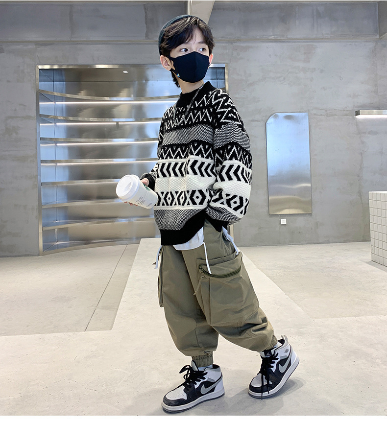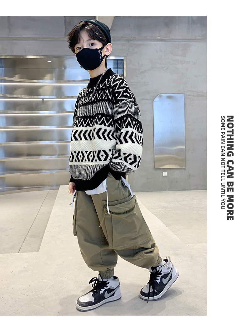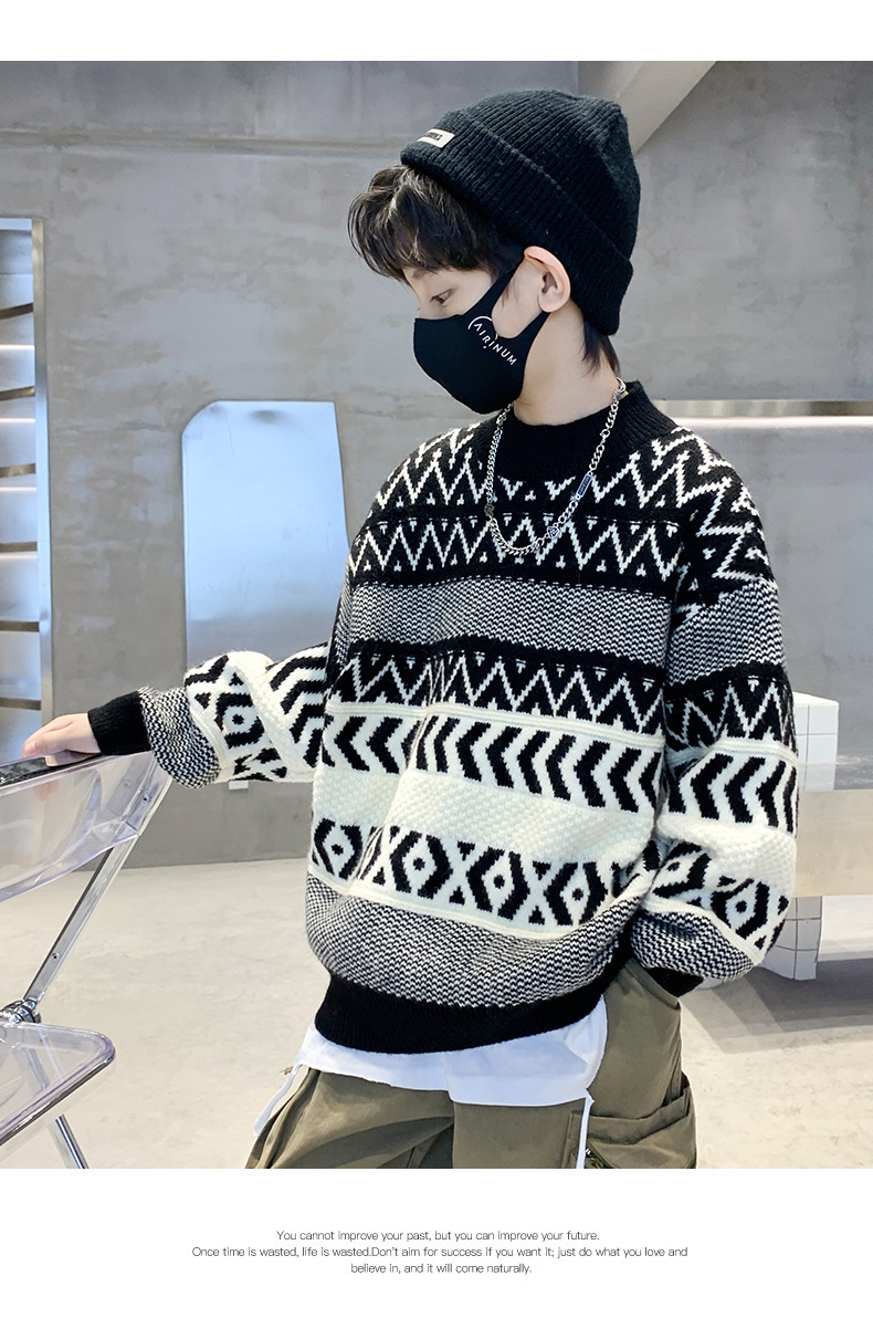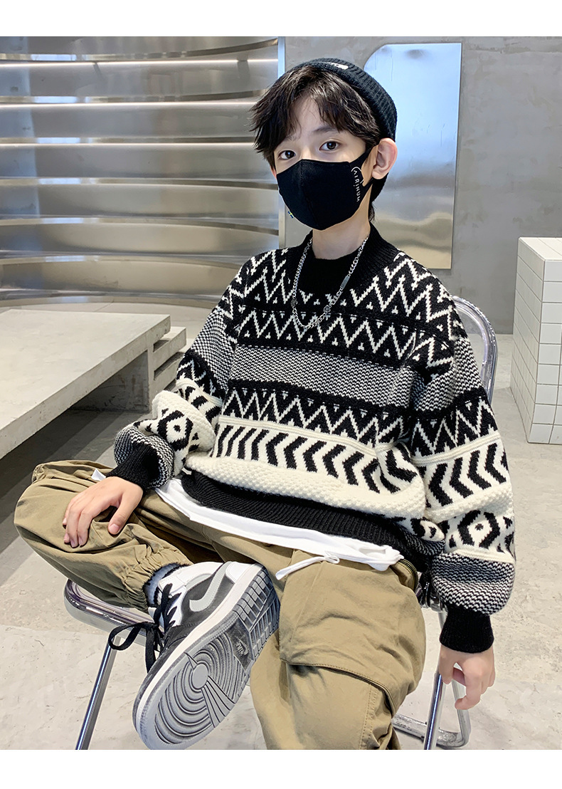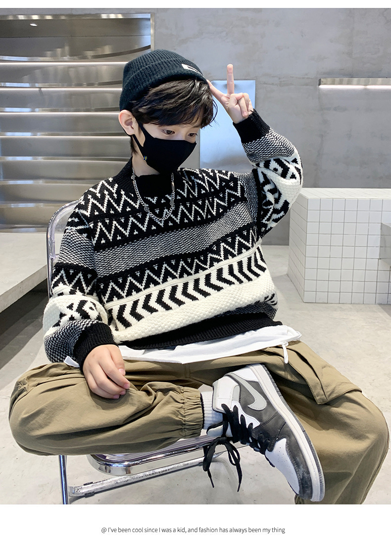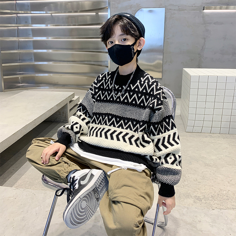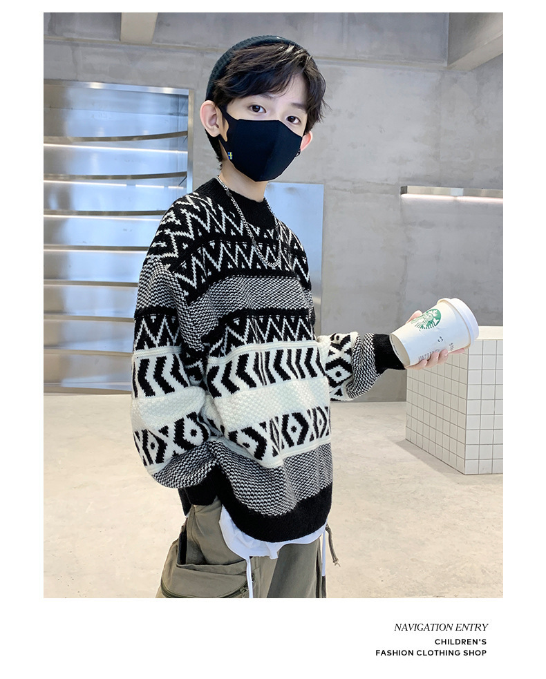 남자들의 가을과 겨울 2024 새로운 어린이 겨울 한국 니트 스웨터베이스 두꺼운 서양식 중대형 어린이 패션스토어 가기