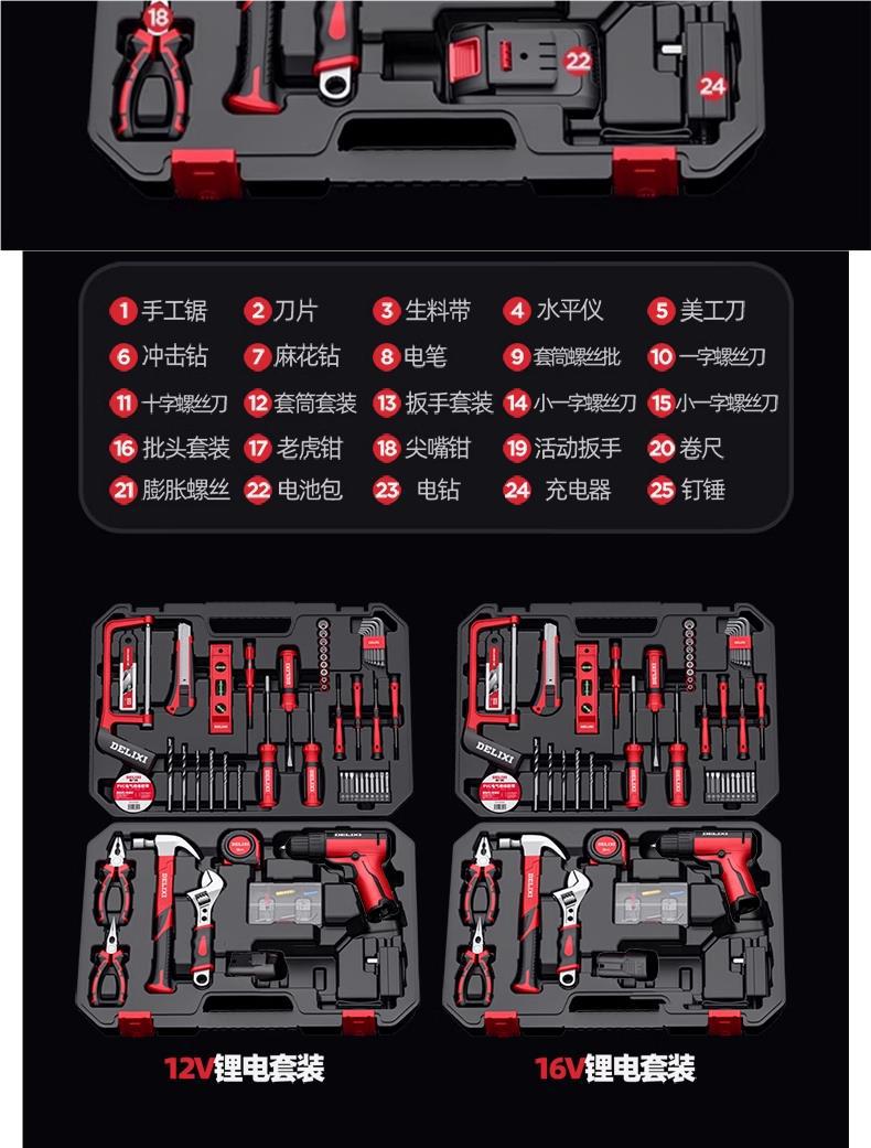Delixi Toolbox 리튬 전기 드릴 전원 도구 세트 다기능 가정용 하드웨어 목공 전기 특수 유지 보수스토어 가기