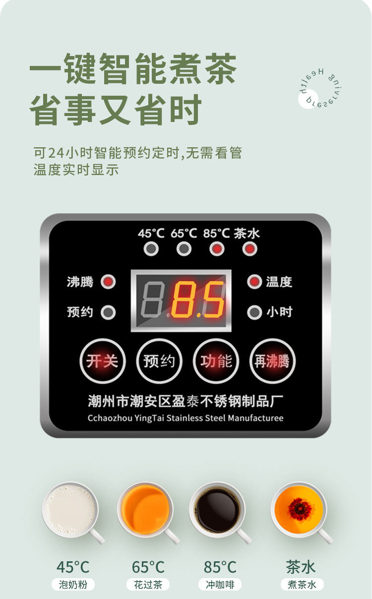 새로운 스타일의 차 만들기 대용량 상업용 전기 난방 끓는 버킷 버킷 지능형 자동 홍차 브루 투명 절연 버킷