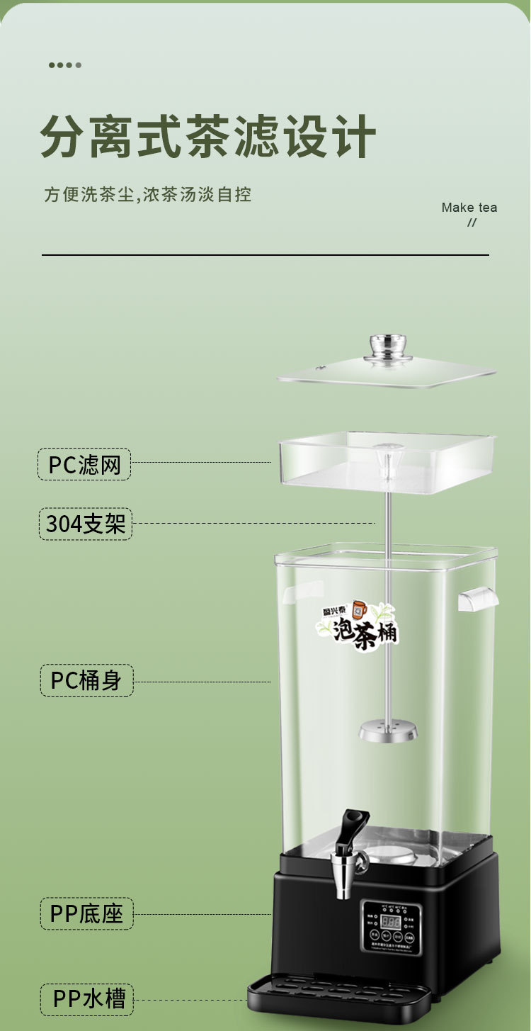 새로운 스타일의 차 만들기 대용량 상업용 전기 난방 끓는 버킷 버킷 지능형 자동 홍차 브루 투명 절연 버킷스토어 가기