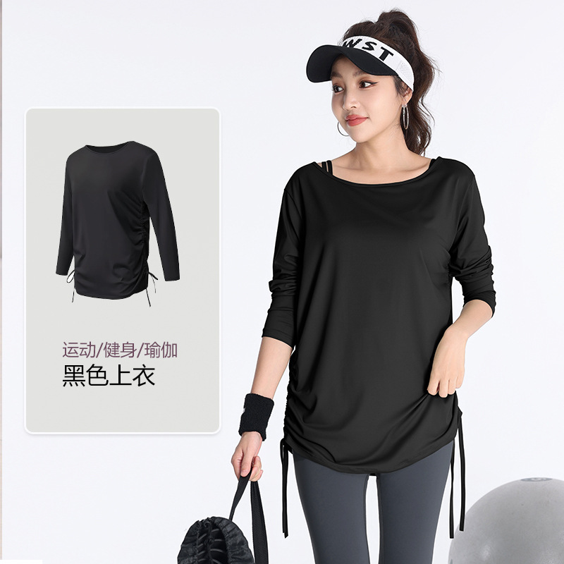 여성용 긴팔 티셔츠, 루즈핏, 통기성, 심플한 트레이닝, 피트니스, 요가복, 큰 사이즈, 플러스 사이즈, 롱탑, 신축성