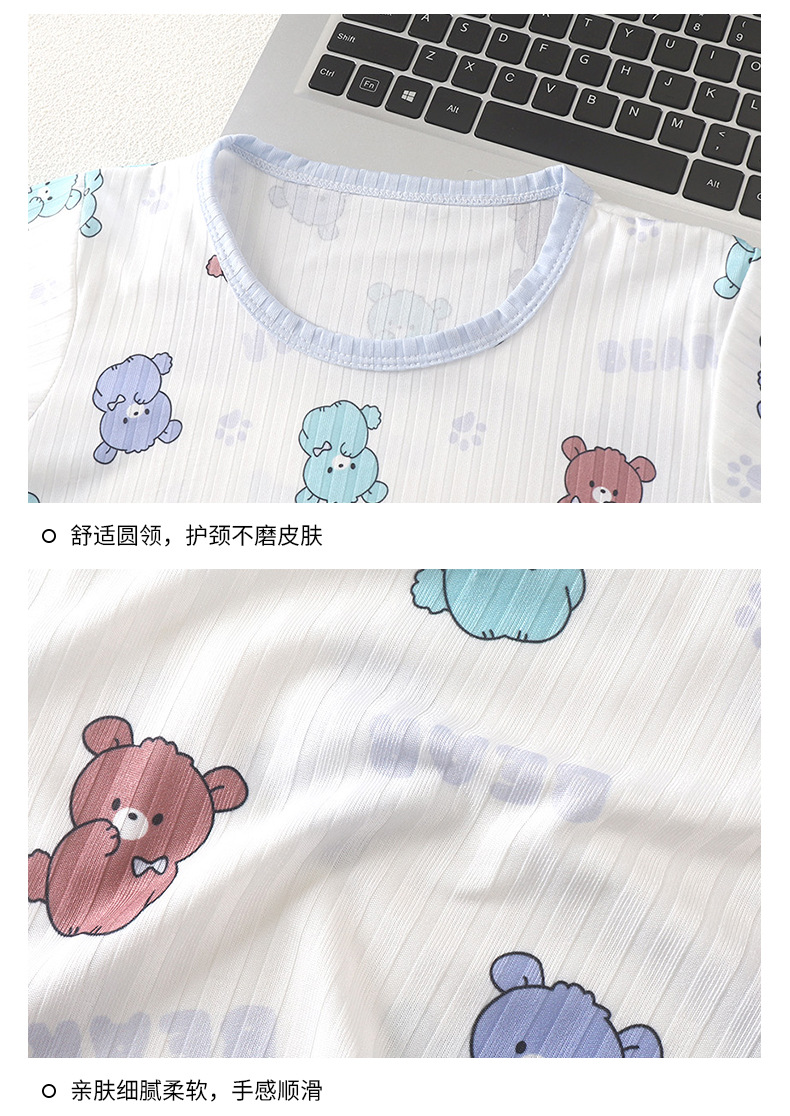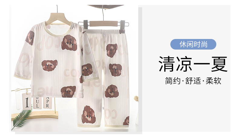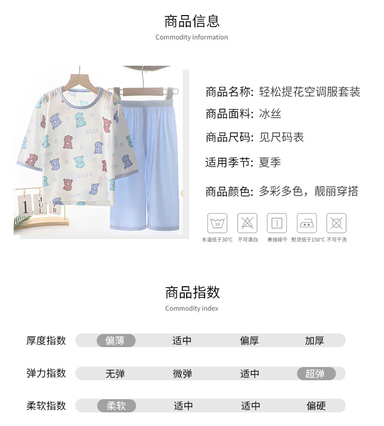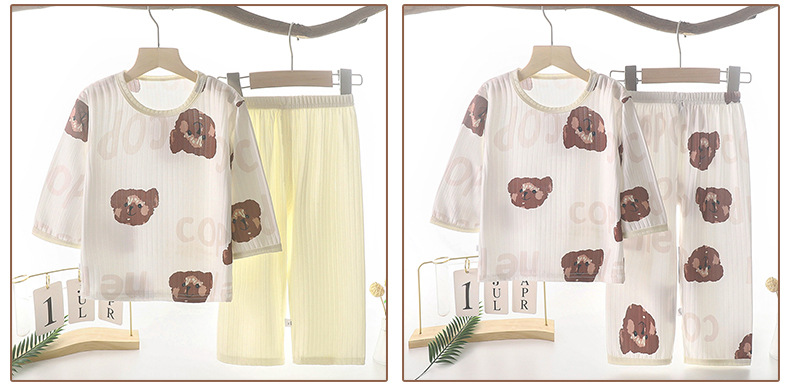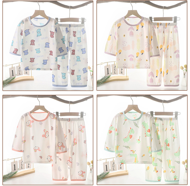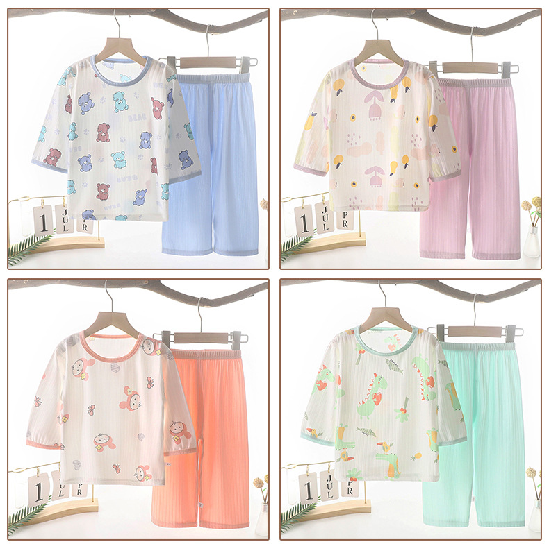 어린이 아이스 실크 홈 의류 통기성 에어컨 의류 소녀 컬러 세븐 슬리브 세트 아기의 여름 잠옷스토어 가기