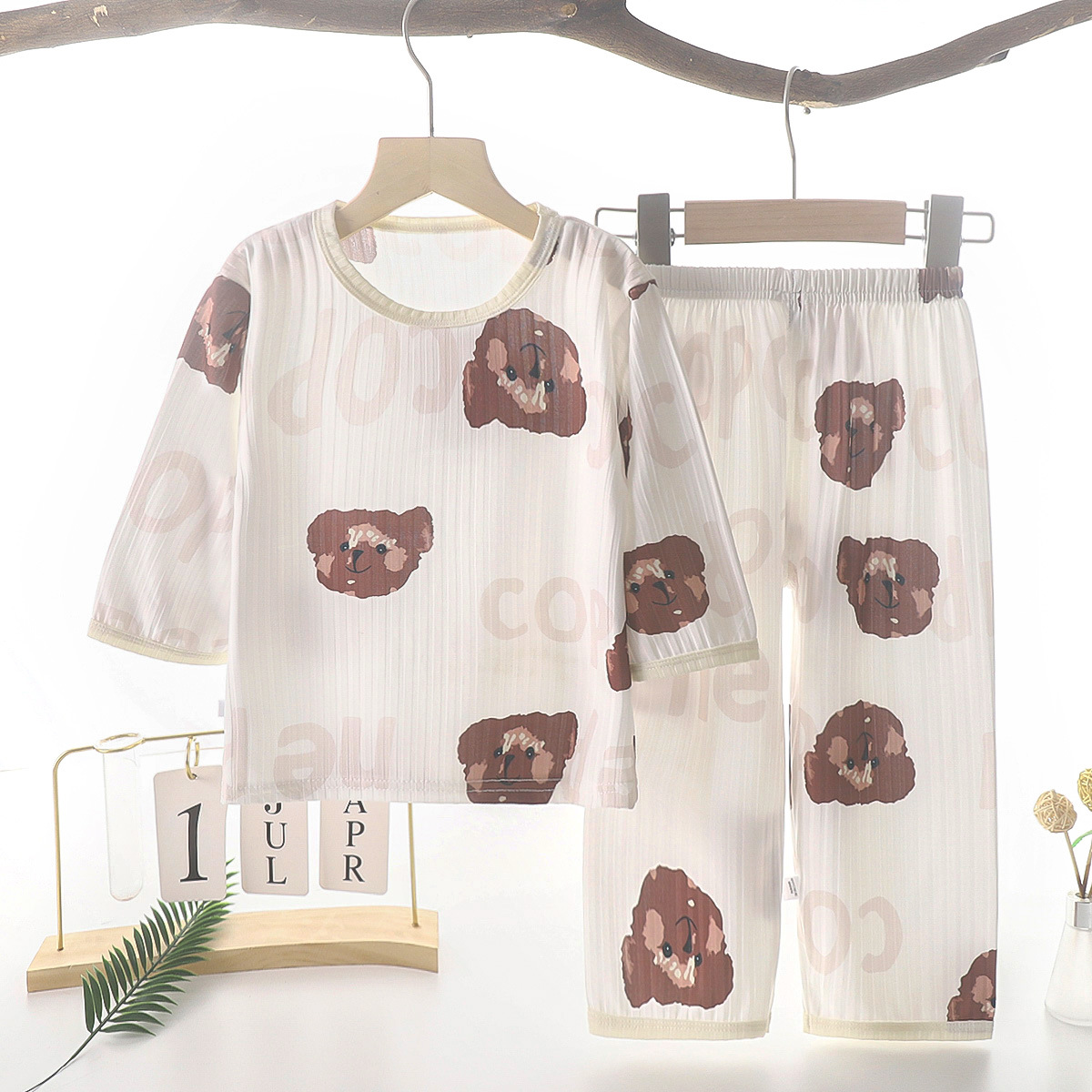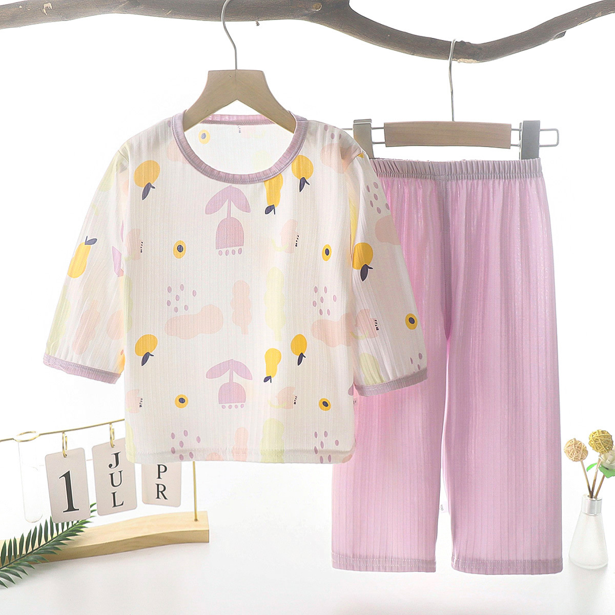 어린이 아이스 실크 홈 의류 통기성 에어컨 의류 소녀 컬러 세븐 슬리브 세트 아기의 여름 잠옷