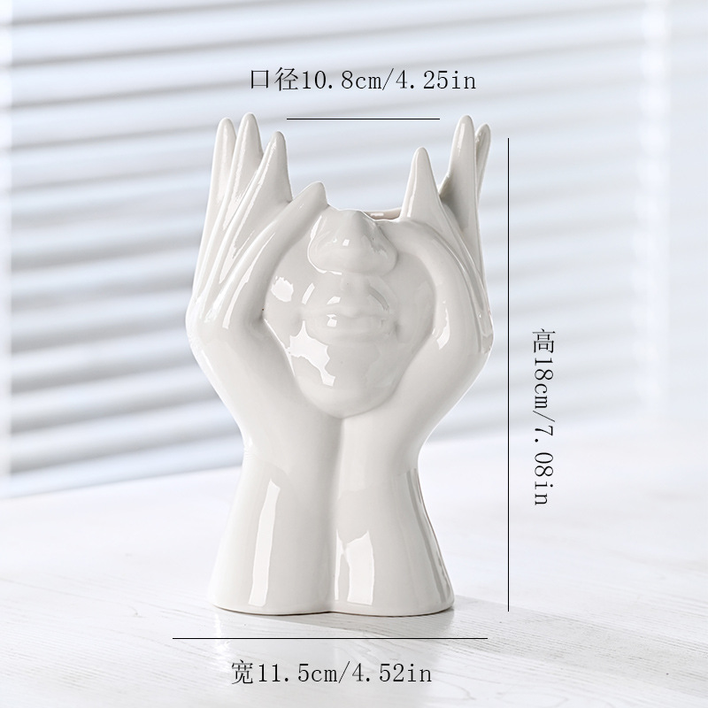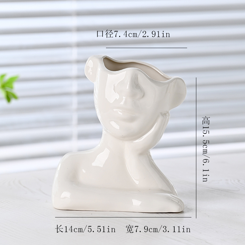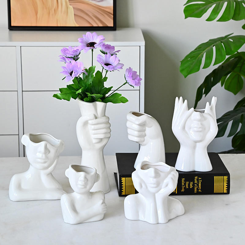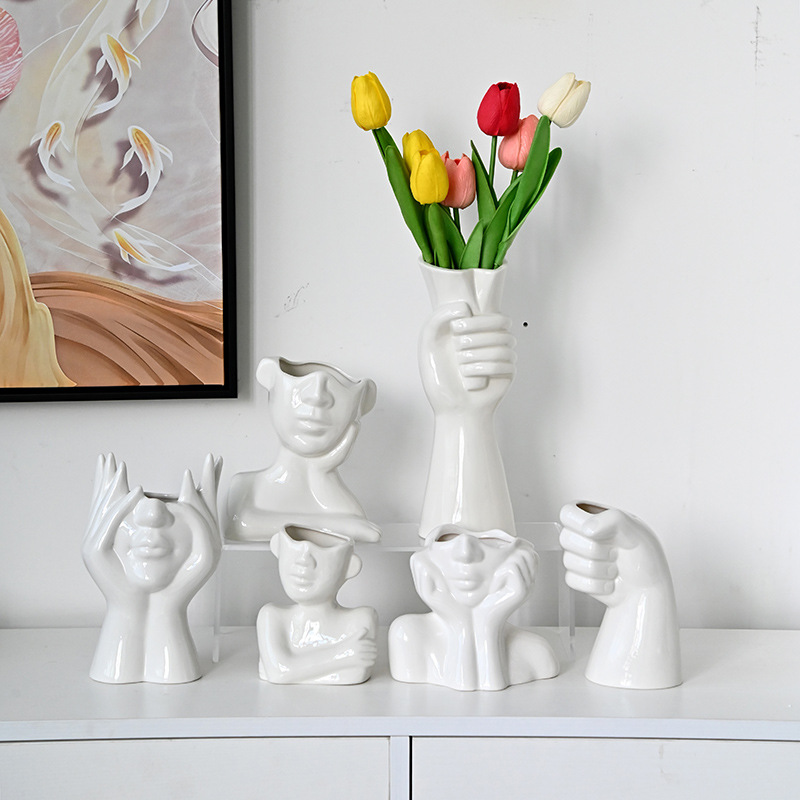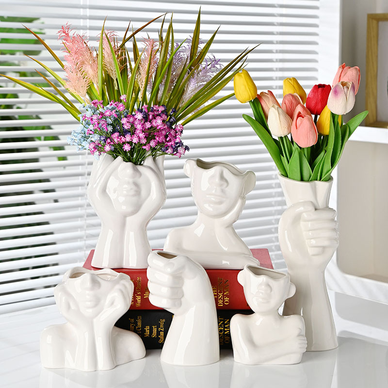 국경 간 노르딕 인 스타일 세라믹 꽃병 간단한 얼굴 꽃 장식품 추상 예술 장식품