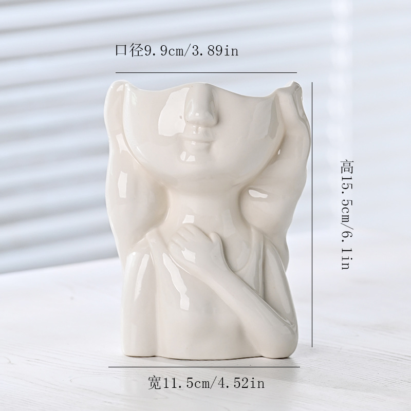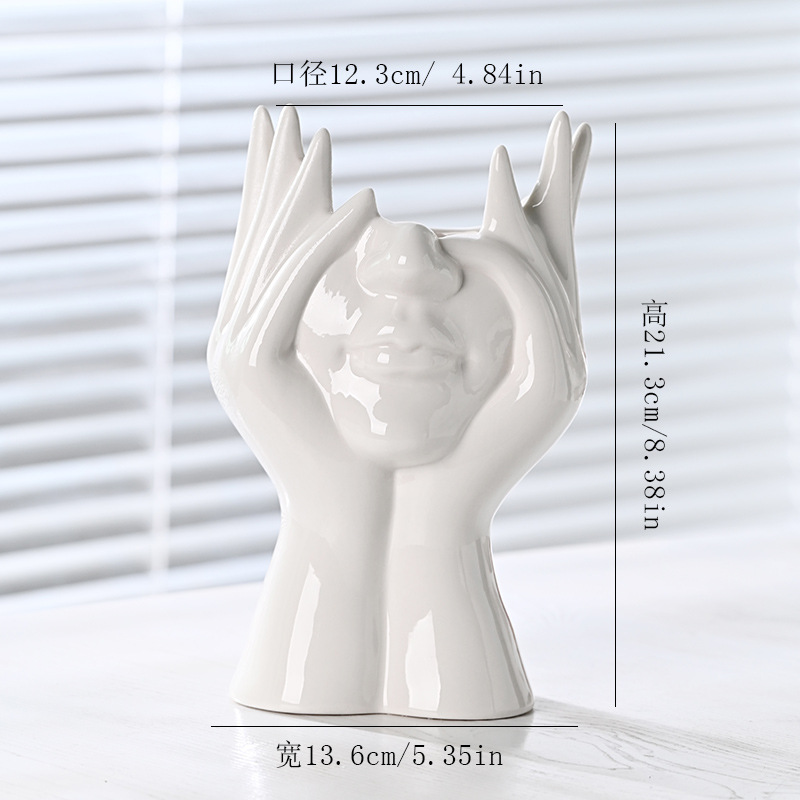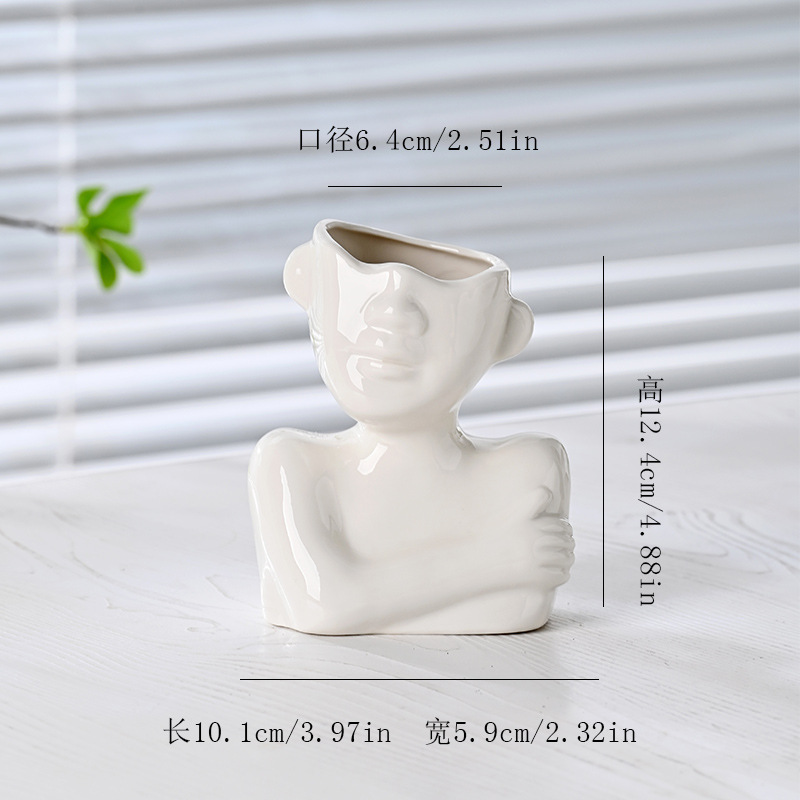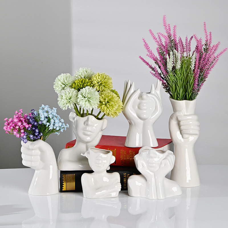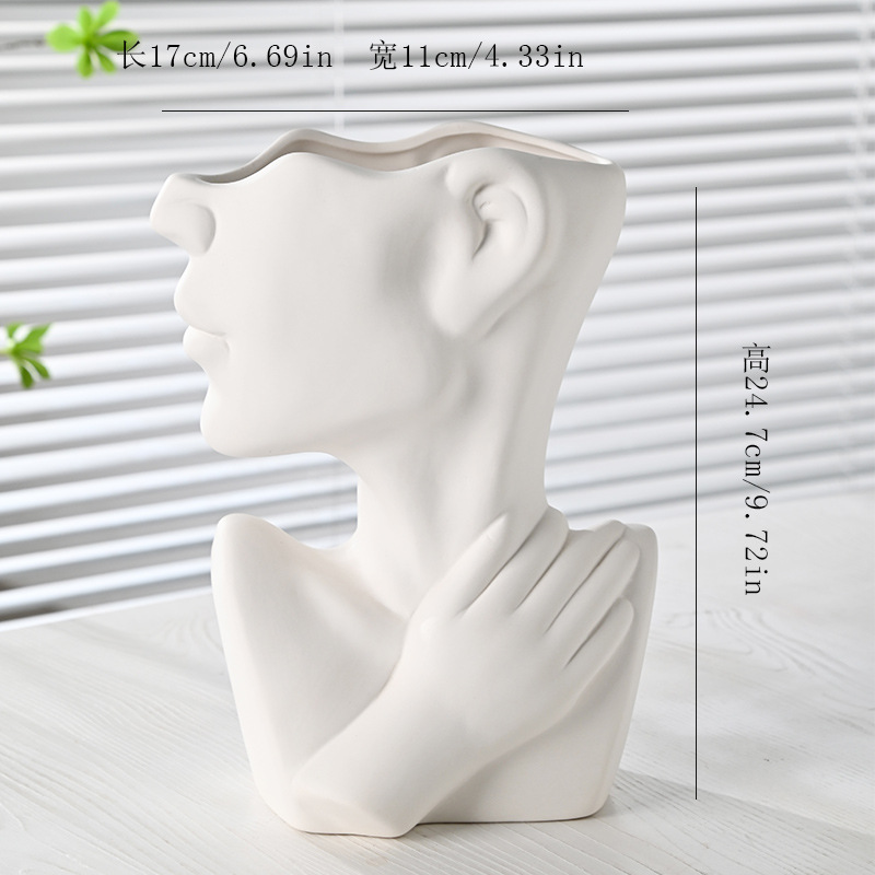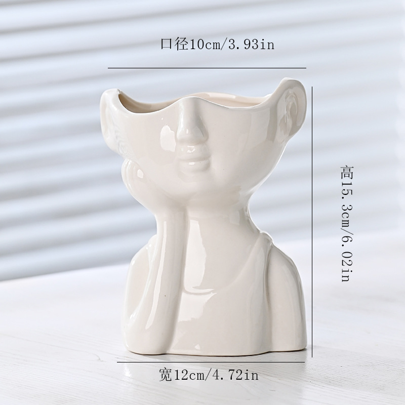국경 간 노르딕 인 스타일 세라믹 꽃병 간단한 얼굴 꽃 장식품 추상 예술 장식품