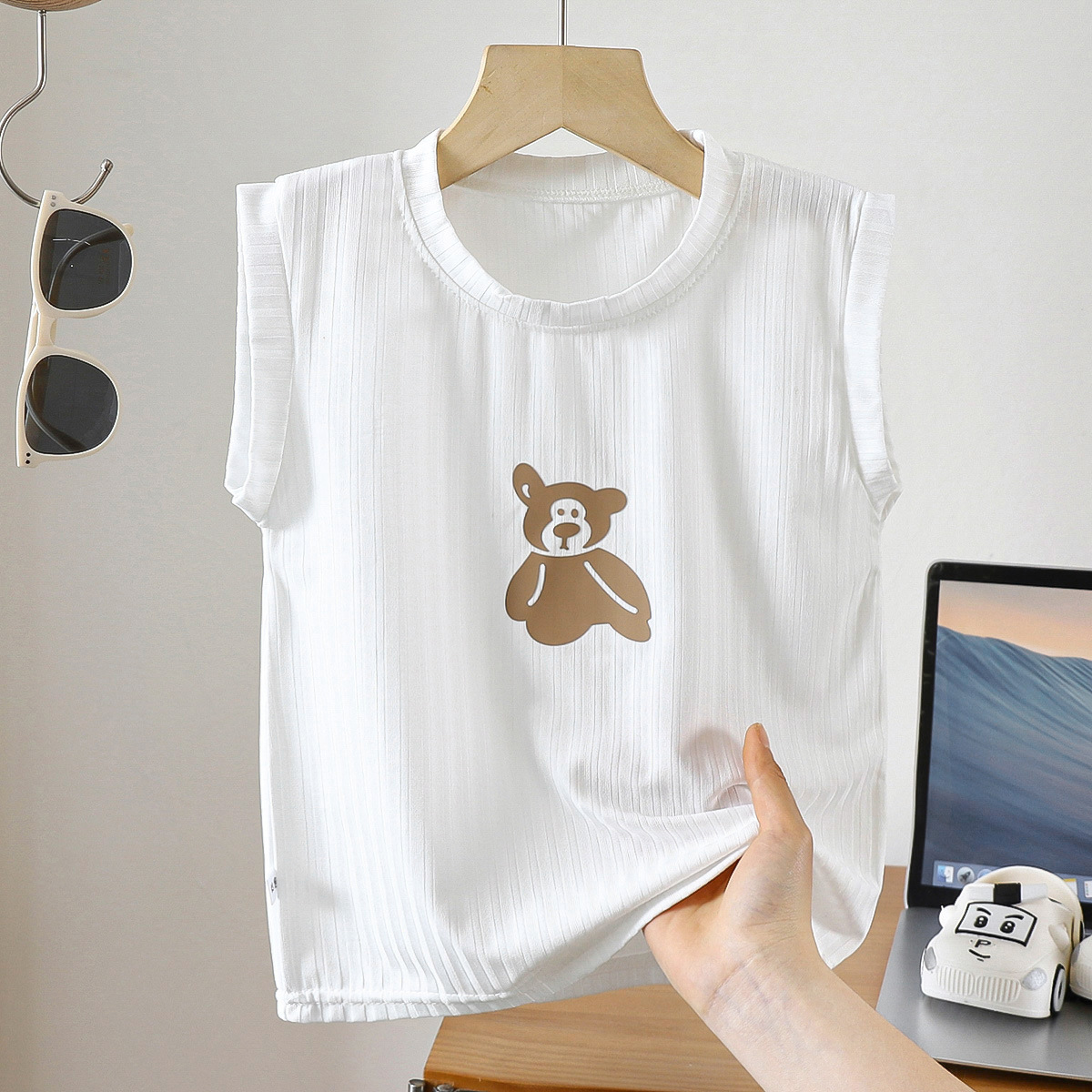 아기 패션 티셔츠 소녀 여름 민소매 옷 소년 패션 착용 어린이 아이스 실크 최고 대외 무역 도매