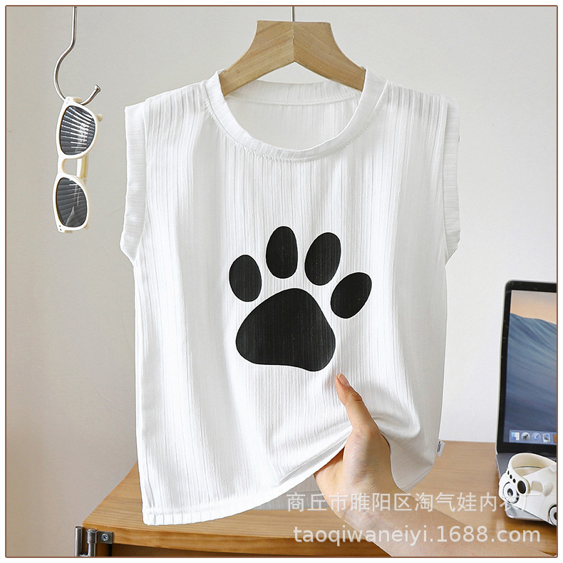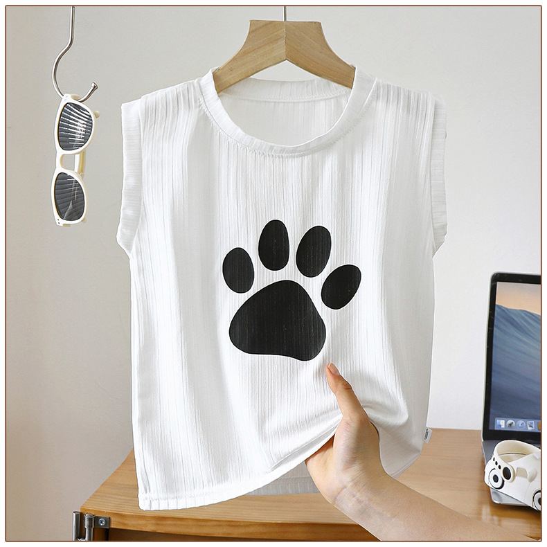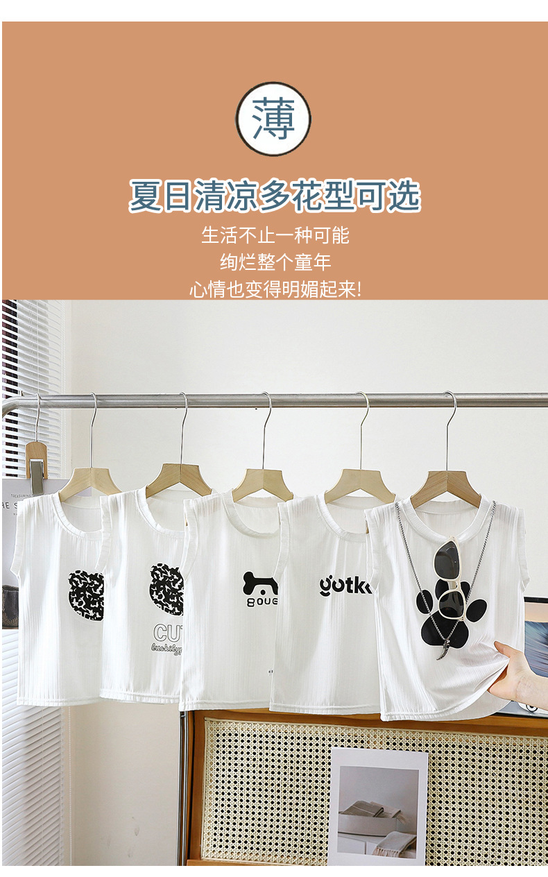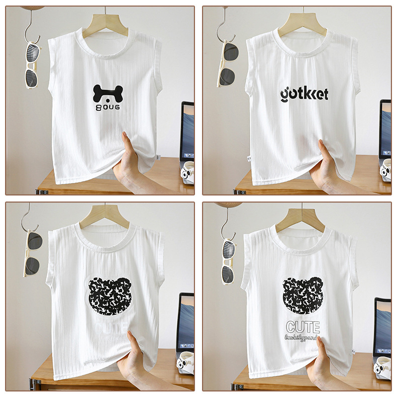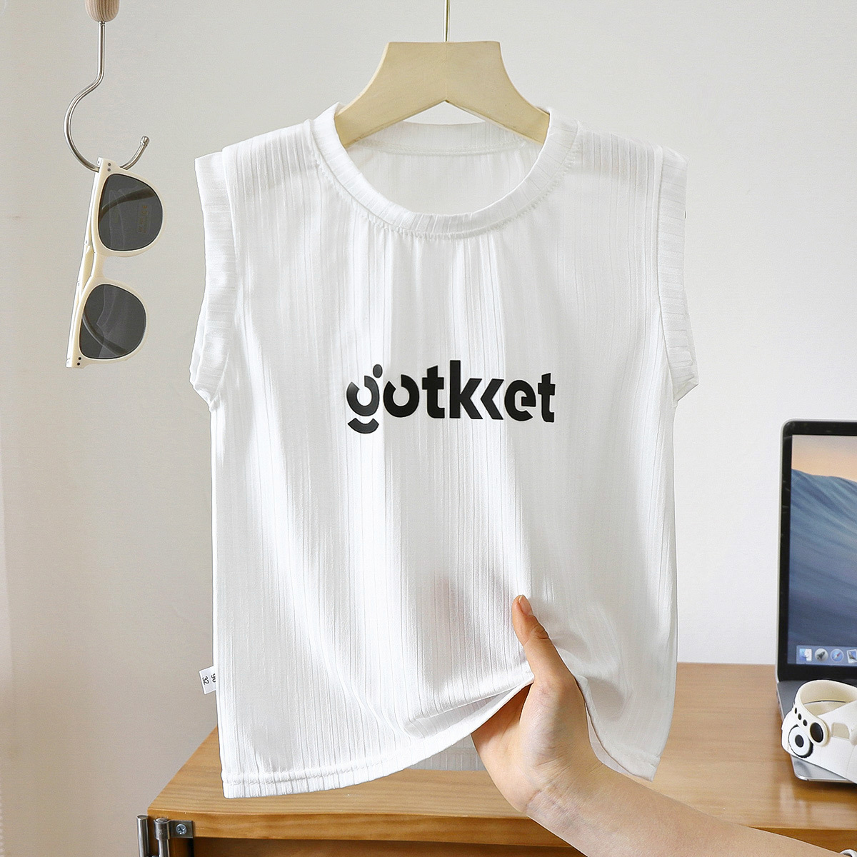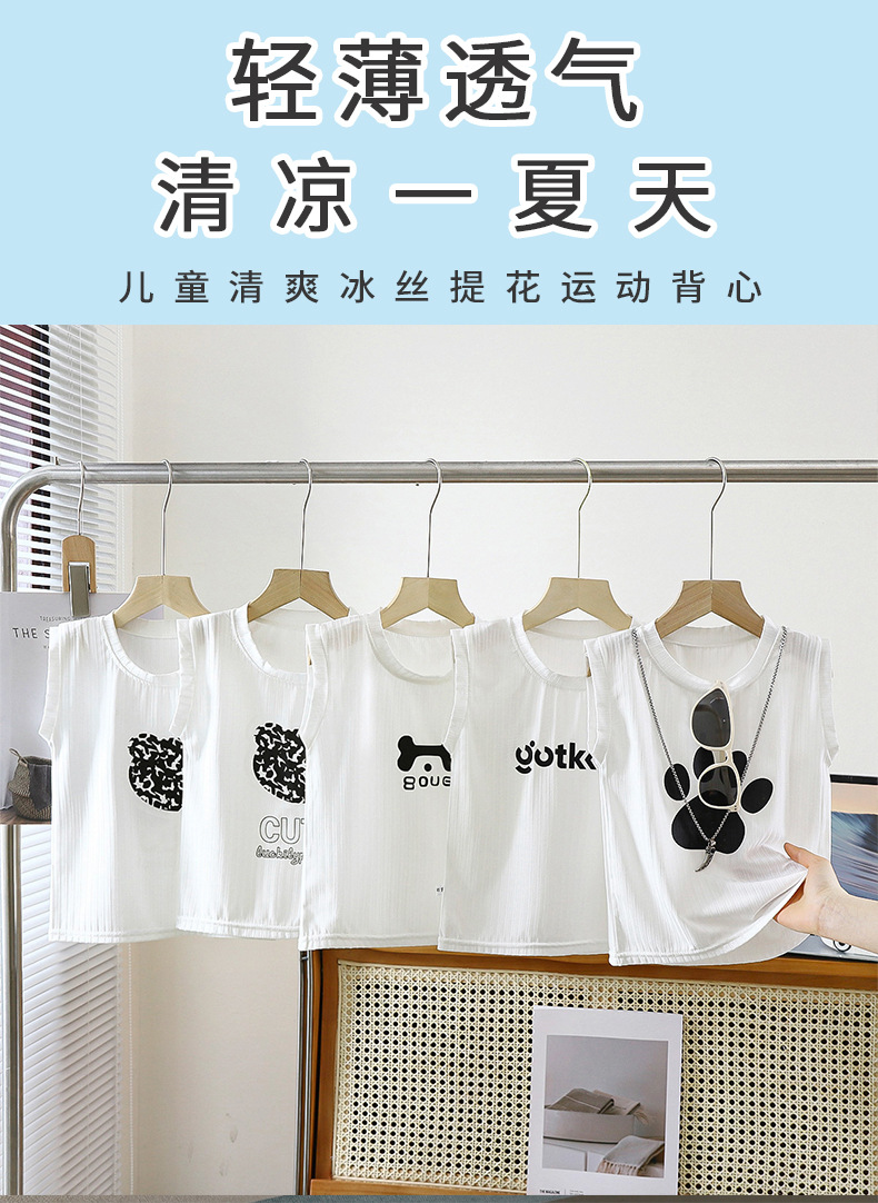 아기 패션 티셔츠 소녀 여름 민소매 옷 소년 패션 착용 어린이 아이스 실크 최고 대외 무역 도매스토어 가기