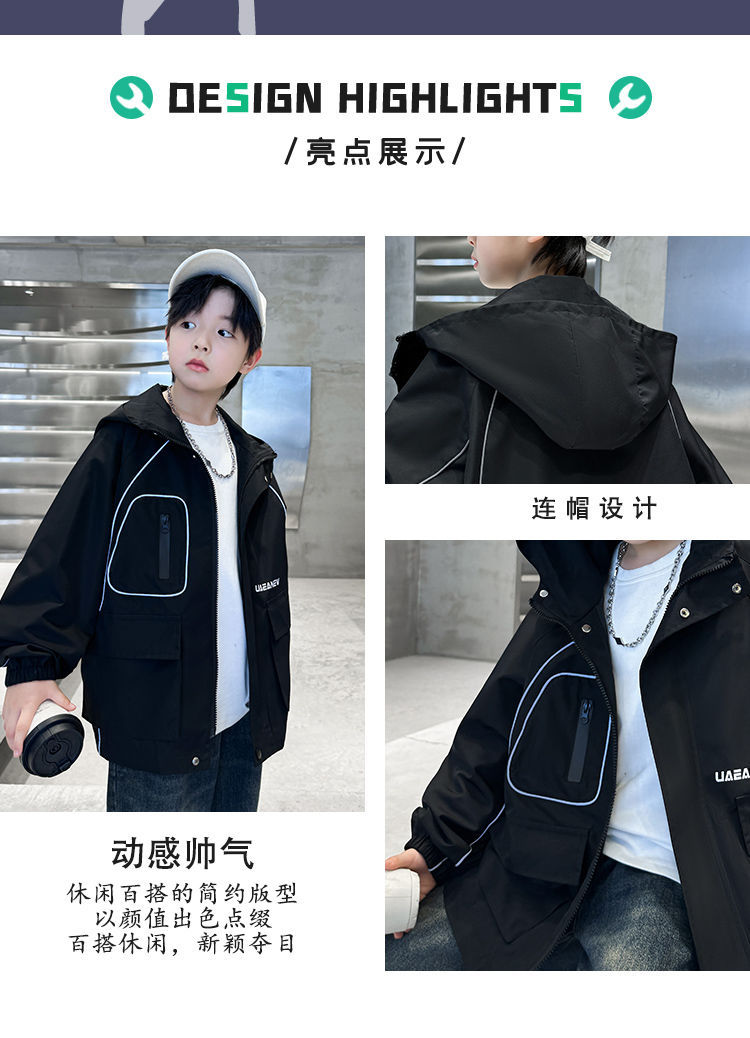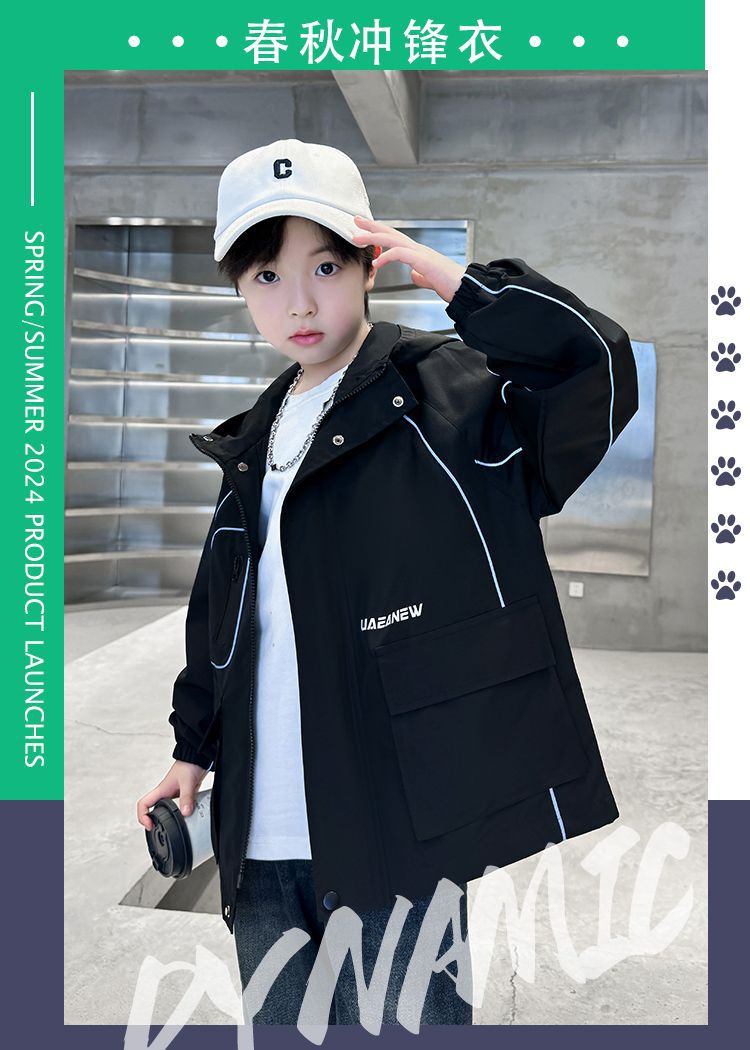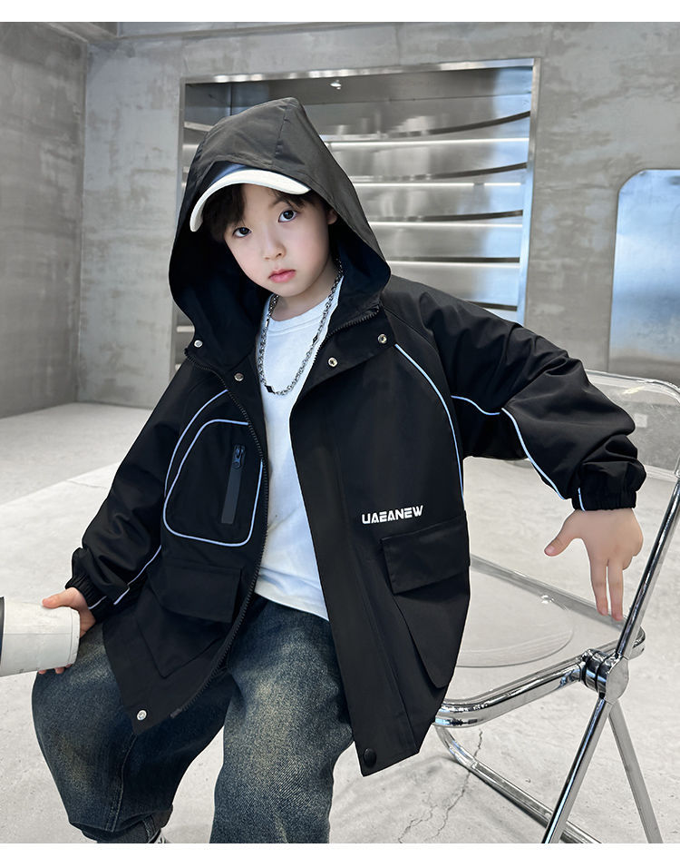 2024 소년 봄과 가을 뉴 코트 캐주얼 핸섬 미드 빅 키즈 러스크 코트 가을 방풍 후드 스포츠 재킷