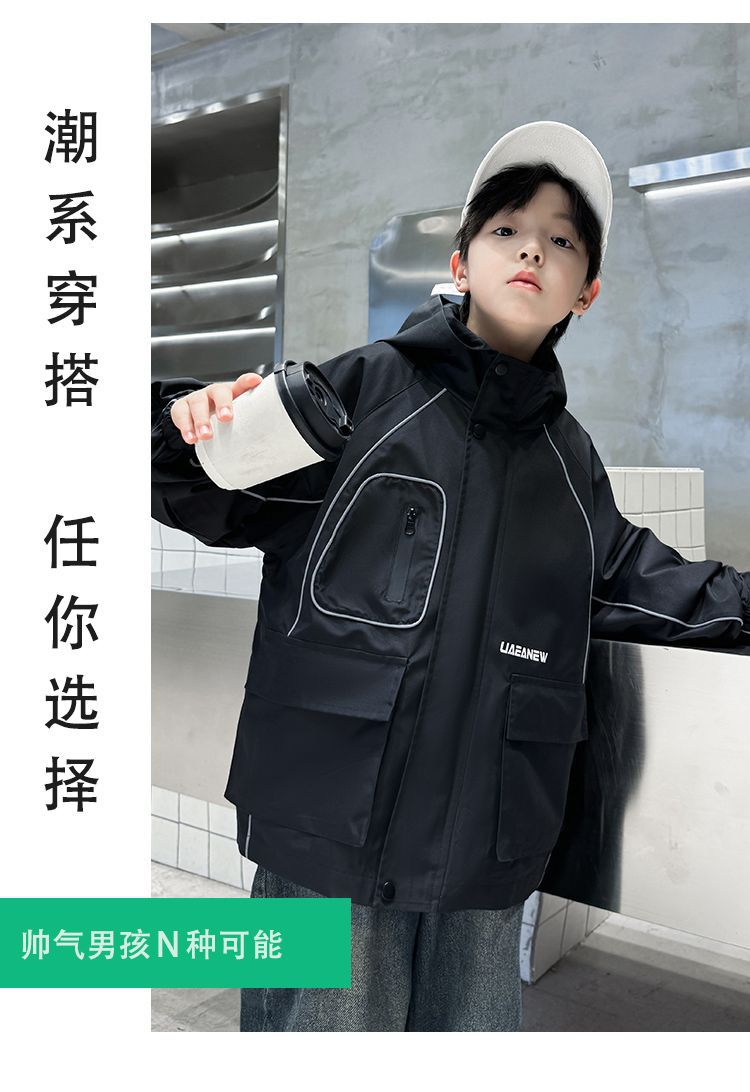2024 소년 봄과 가을 뉴 코트 캐주얼 핸섬 미드 빅 키즈 러스크 코트 가을 방풍 후드 스포츠 재킷스토어 가기