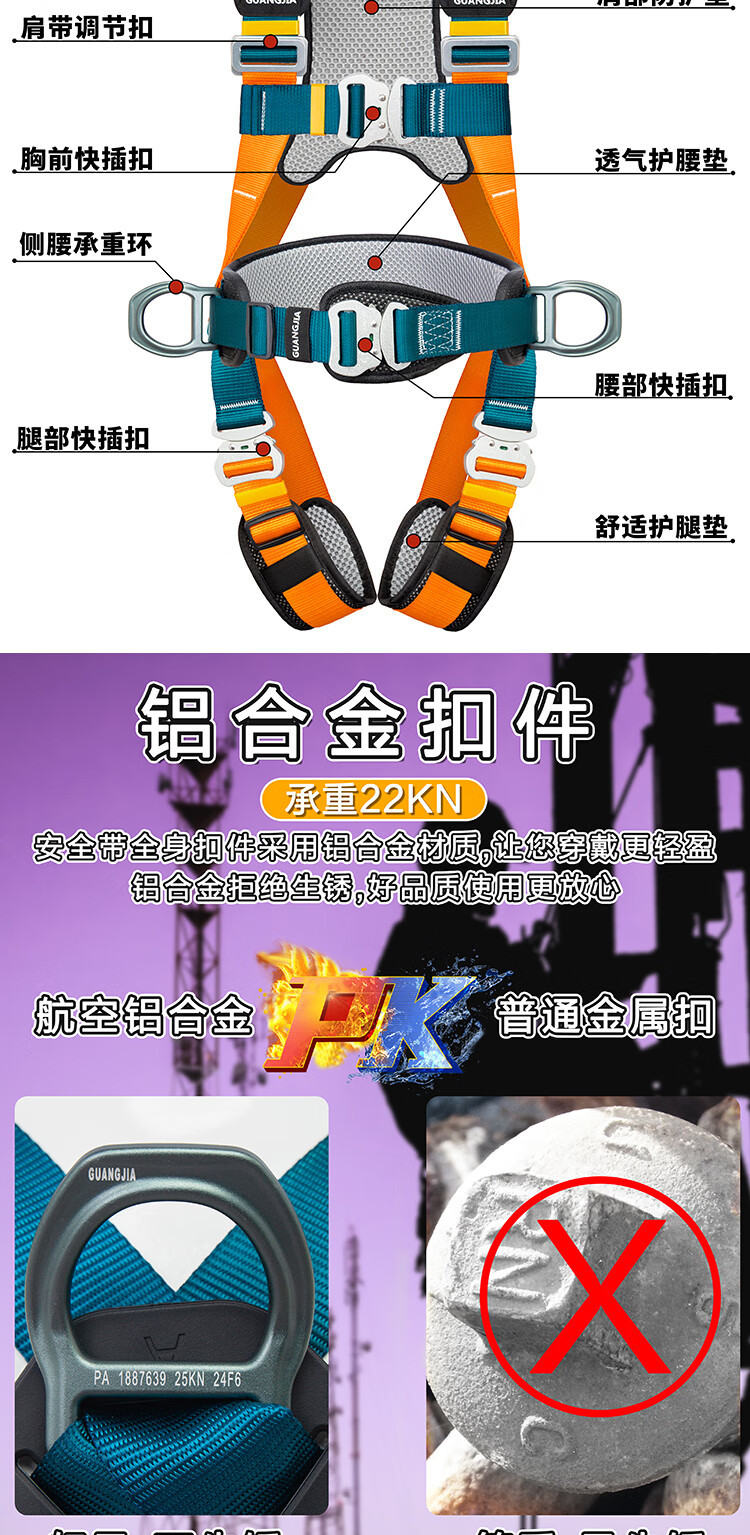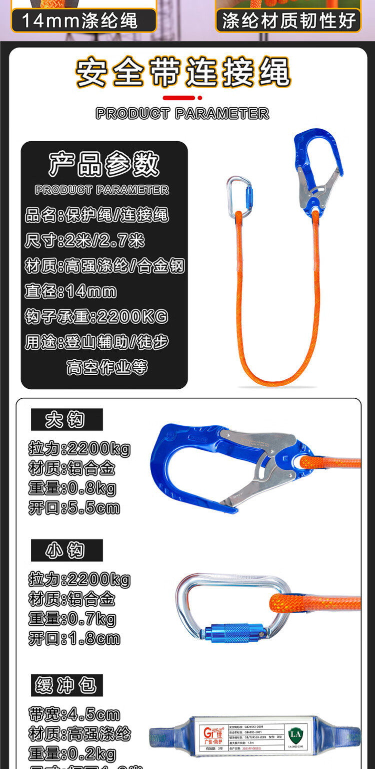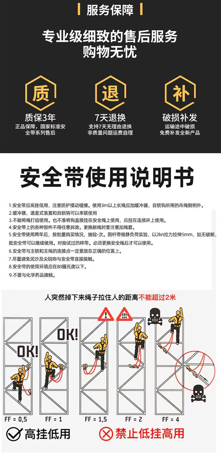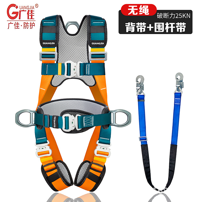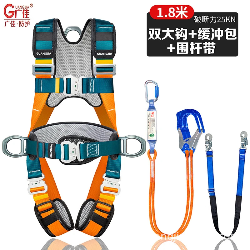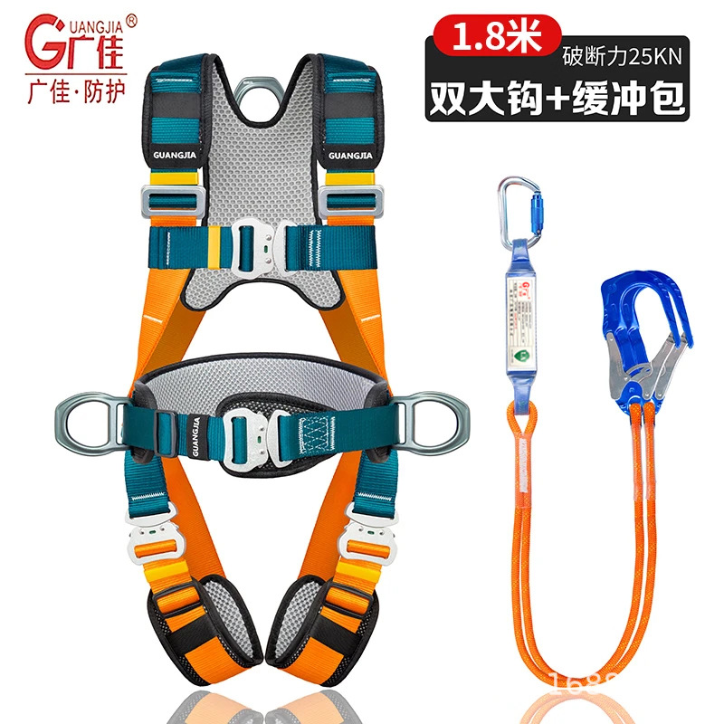 공중 작업 안전 로프 더블 후크 버퍼 패키지 완전한 세트를위한 새로운 국가 표준 전신 5 점 안전 벨트 낙하 방지 보험