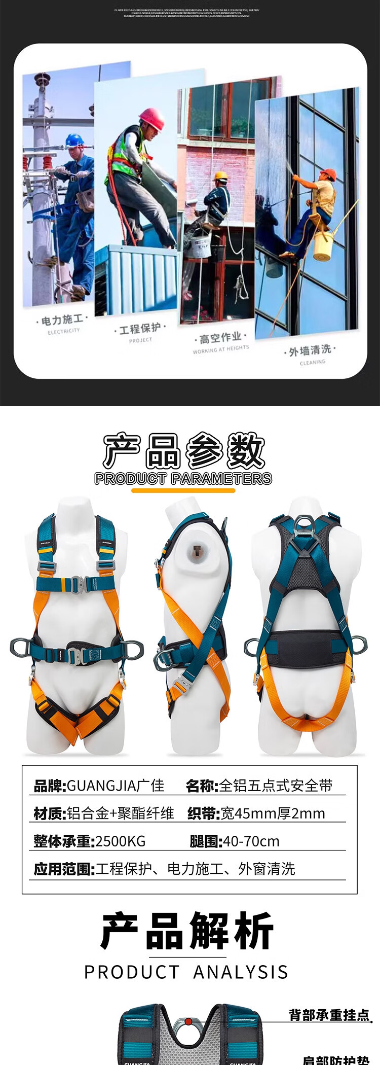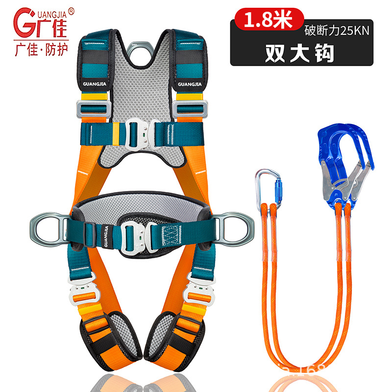 공중 작업 안전 로프 더블 후크 버퍼 패키지 완전한 세트를위한 새로운 국가 표준 전신 5 점 안전 벨트 낙하 방지 보험스토어 가기