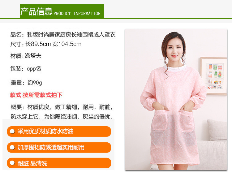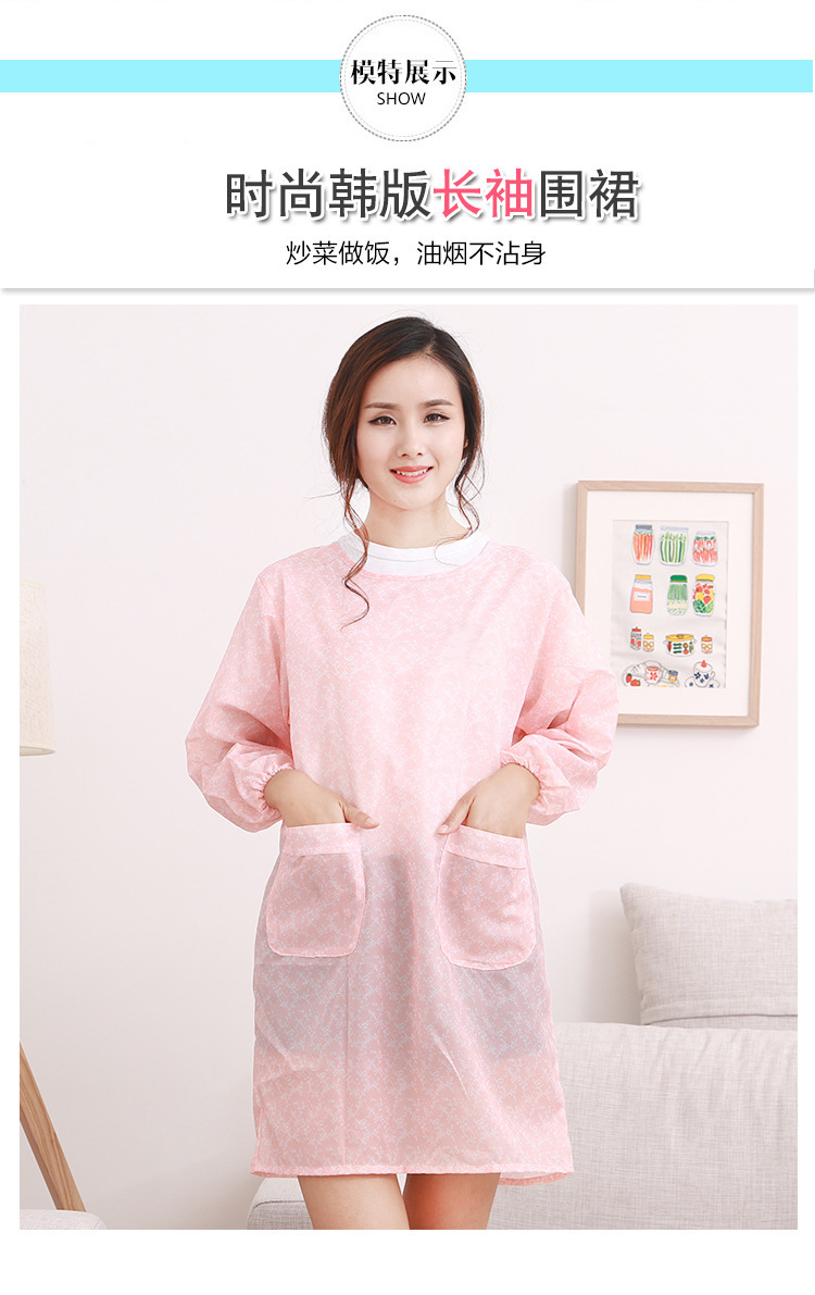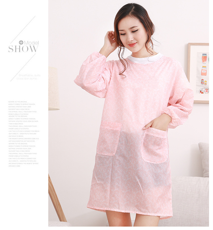 앞치마 한국식 주방 커피 숍 유치원 방수 귀여운 긴 소매 작업복 성인 여성과 남성 허리 작업복스토어 가기