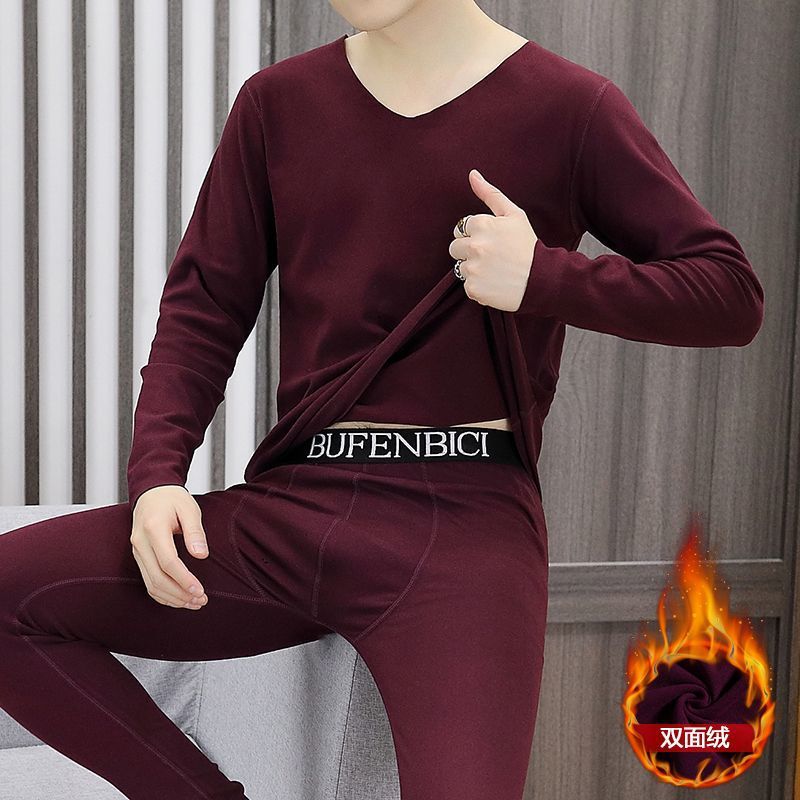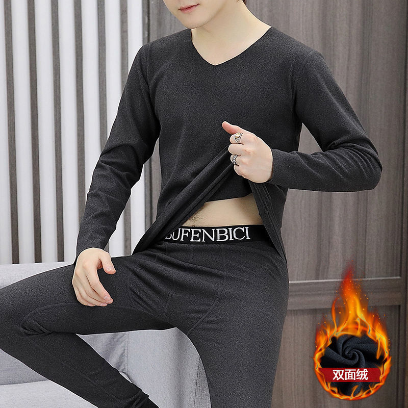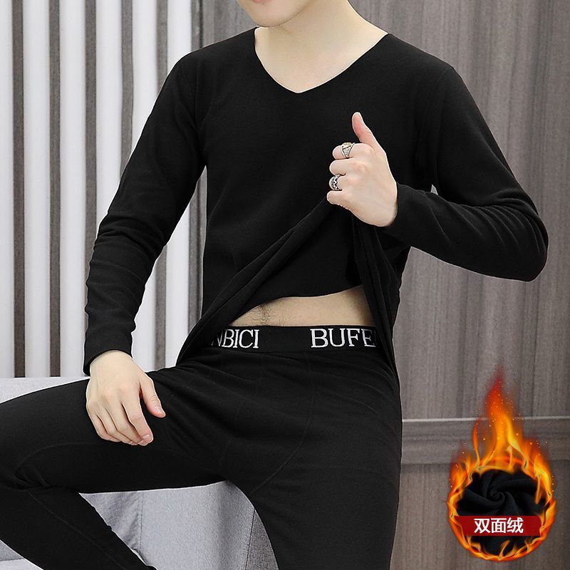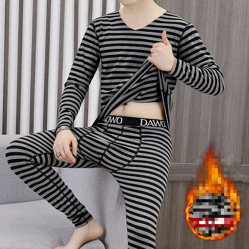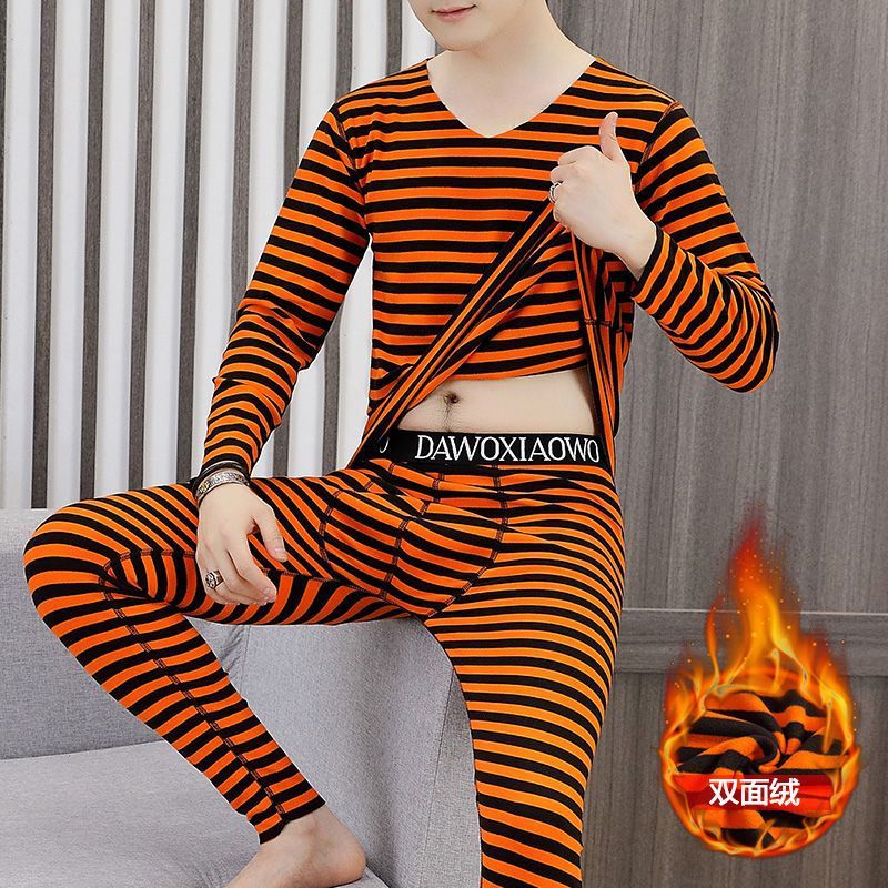 겨울 독일 벨벳 열 속옷 자기 가열 십대 양면 벨벳 줄무늬 바닥 셔츠 남자 가을 옷 긴 바지 세트스토어 가기