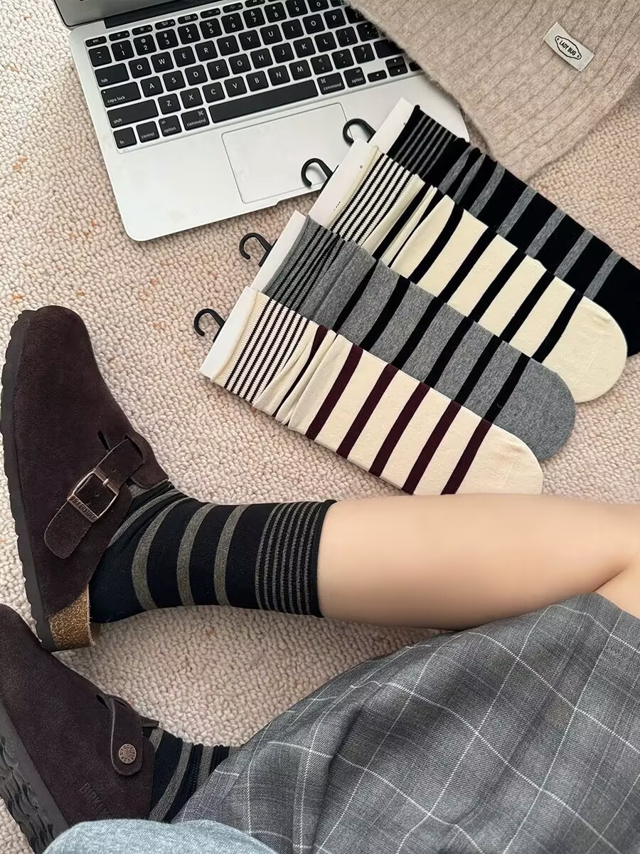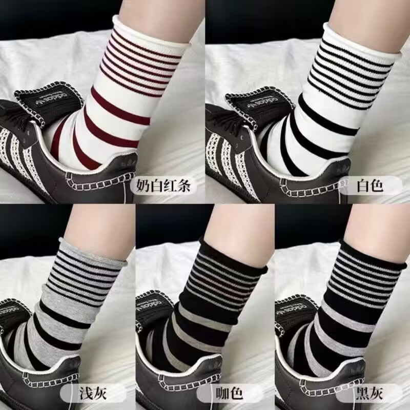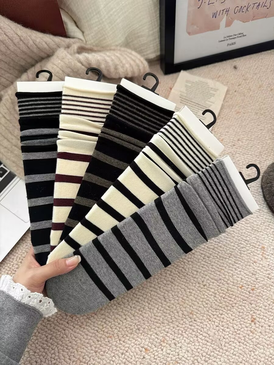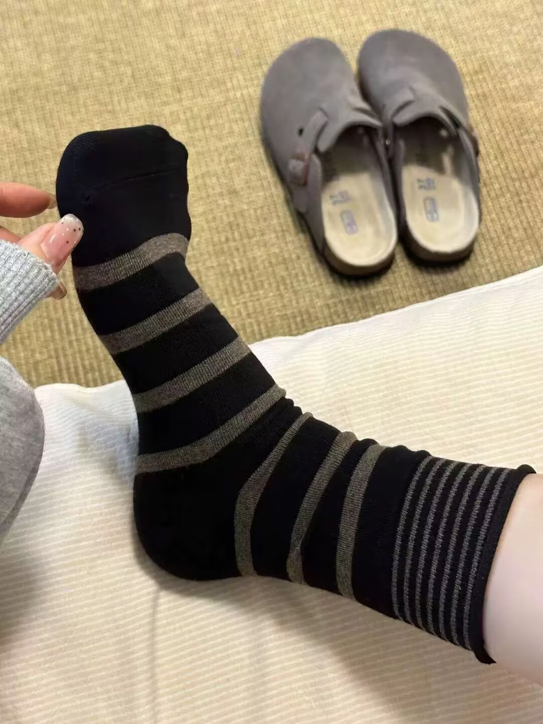 가을 간단한 단색 두껍고 얇은 줄무늬 일본-한국 Ins 스타일 봄과 가을 다목적 뼈없는 슬리밍 스택 양말