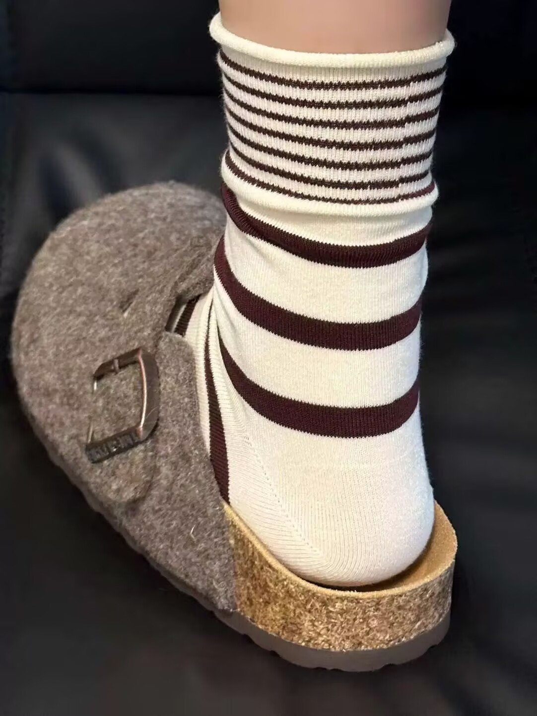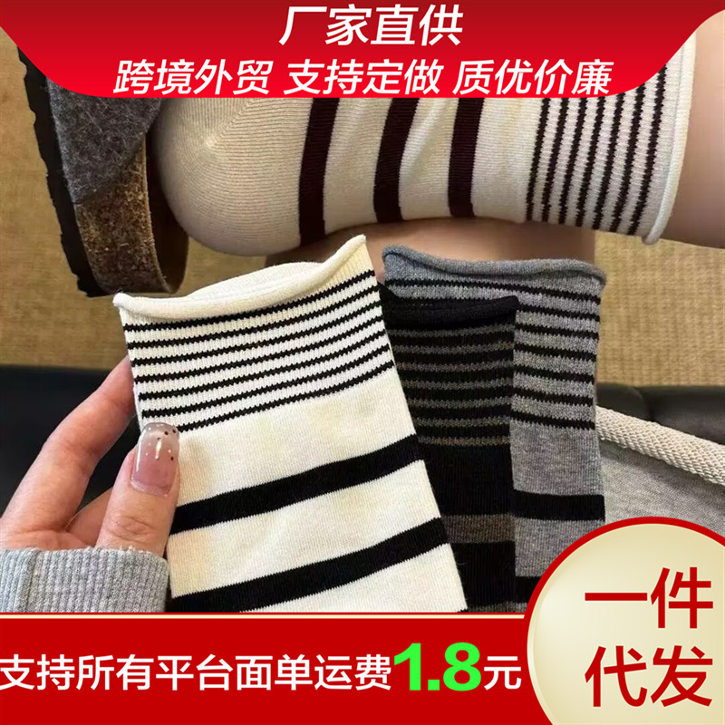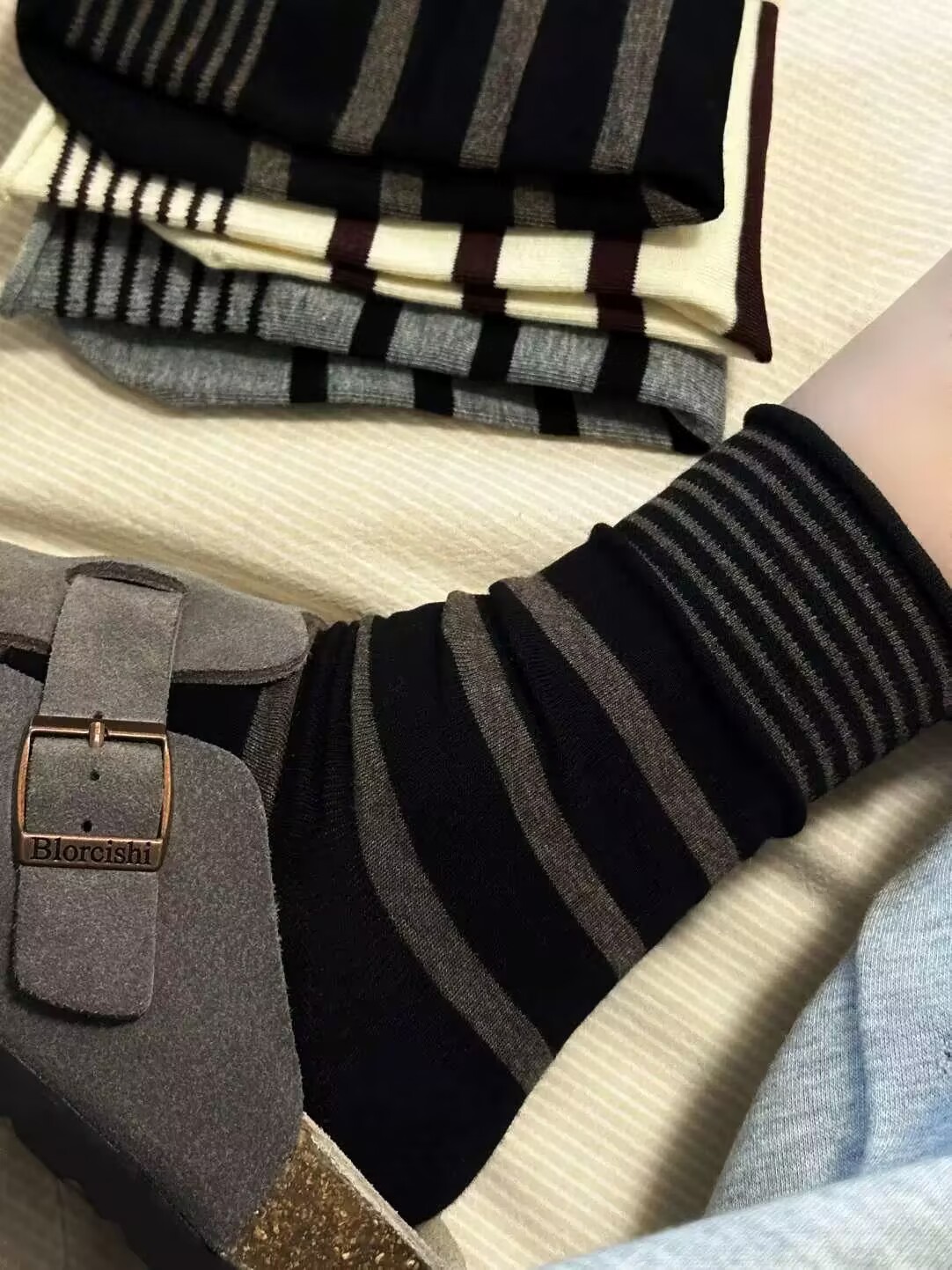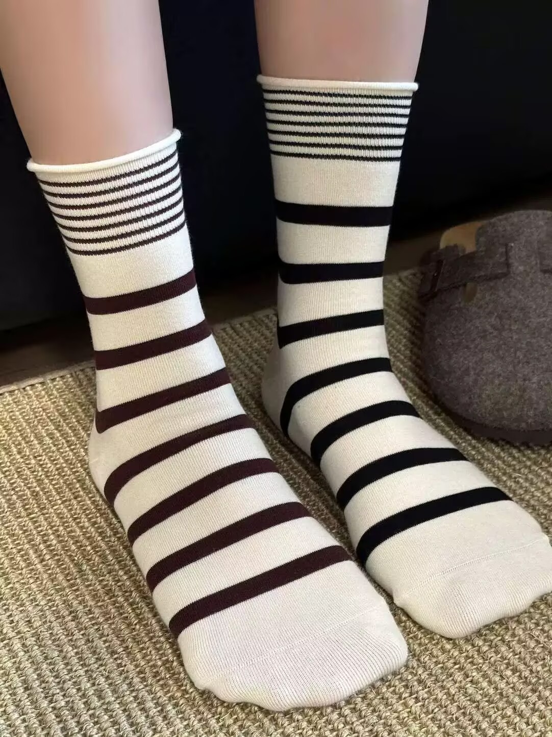 가을 간단한 단색 두껍고 얇은 줄무늬 일본-한국 Ins 스타일 봄과 가을 다목적 뼈없는 슬리밍 스택 양말