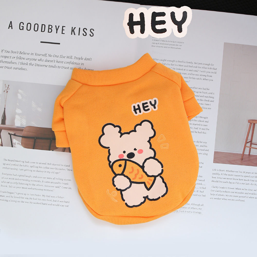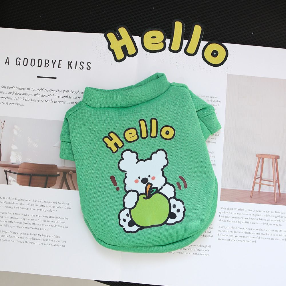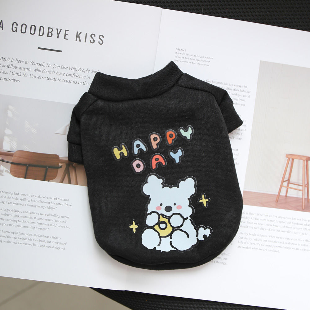재고 가을과 겨울 애완 동물 옷 귀여운 강아지 만화 승무원 목 스웨터 기모 슈퍼 귀여운 고양이 개 보편적 인 옷스토어 가기