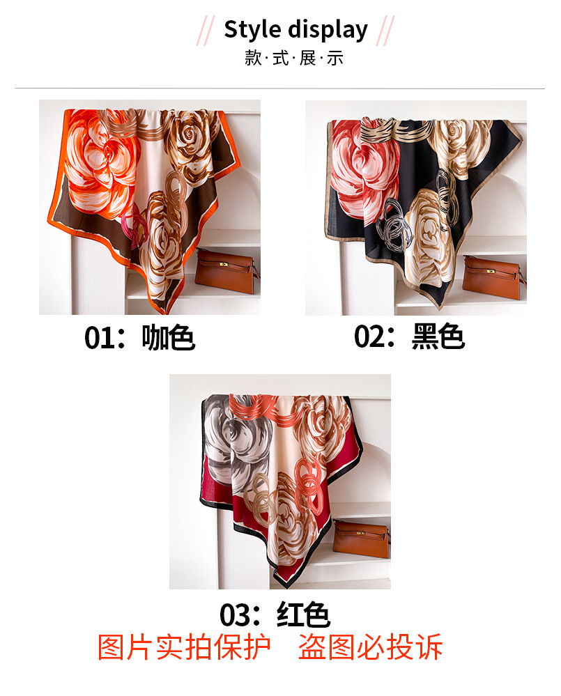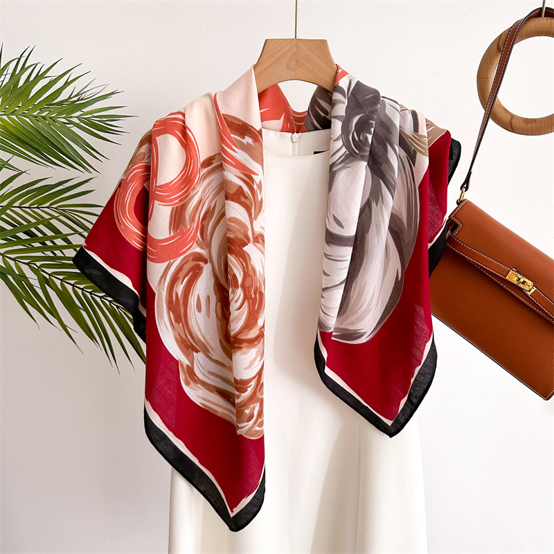 새로운 스타일의 꽃 90 모방 실크 대형 스퀘어 스카프 복고풍 대형 인쇄 목도리 우아한 올 매치 헤링본 스카프