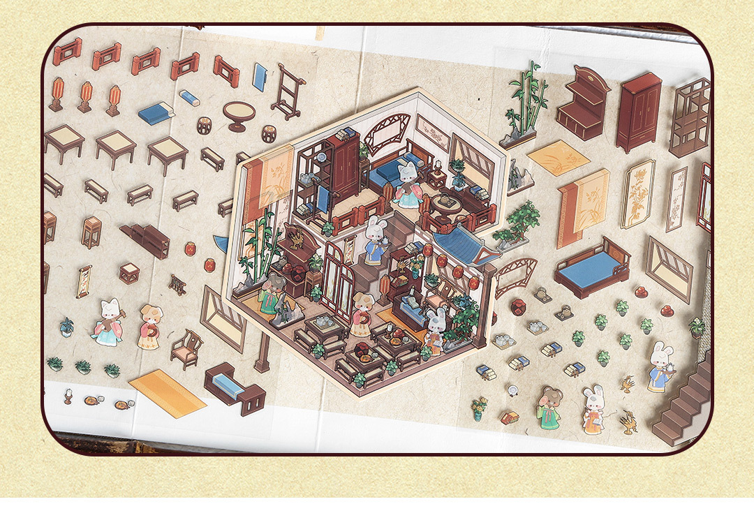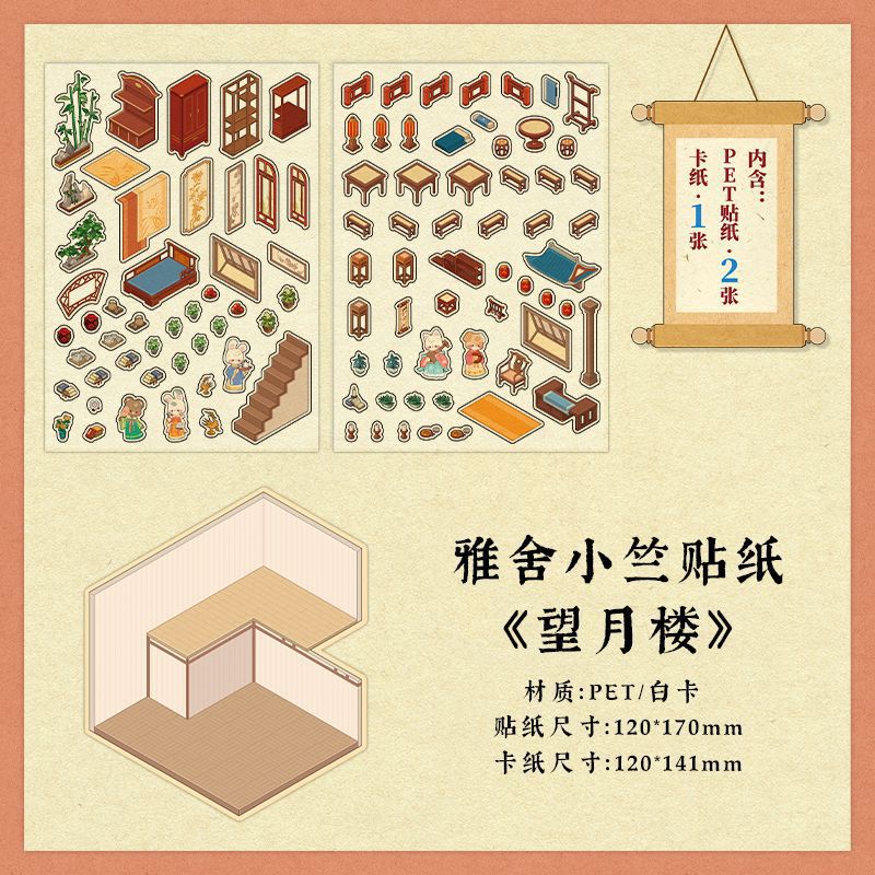 인페렐. 나 미니어처 장면 스티커 Yashe Xiaozhu 시리즈 컷 프리 3D 스택 3 차원 오두막 손 계정 풍경스토어 가기