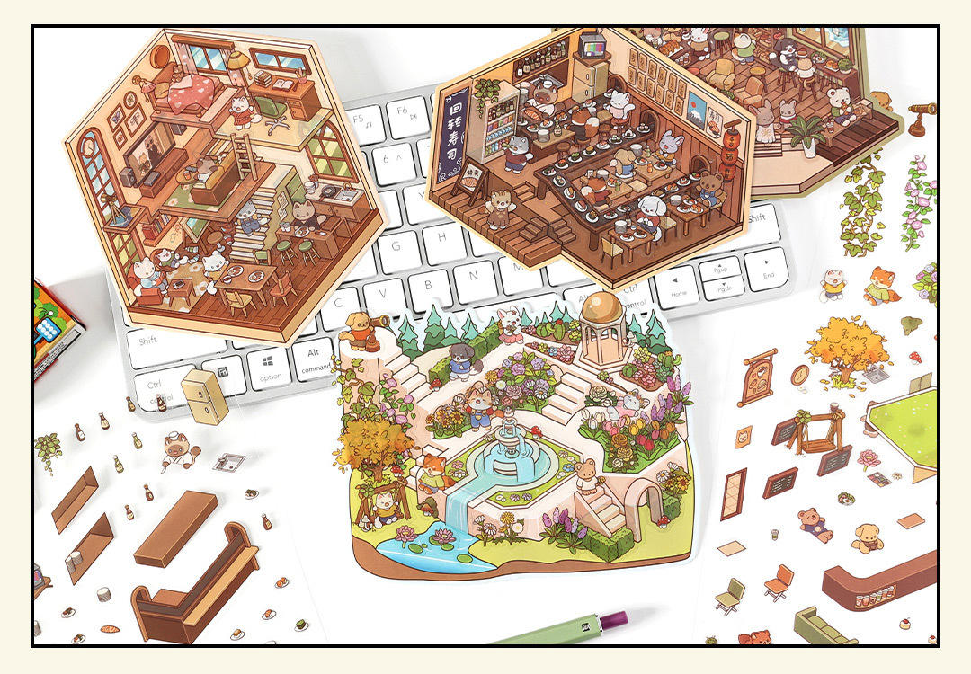 인페렐. 나 조경 스티커 오늘의 비즈니스 투폭탄 비주얼 3D 스태킹 스테레오 캐빈 손 계정 장식 스티커