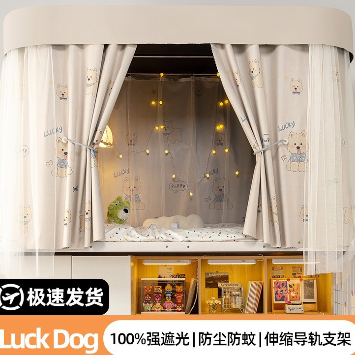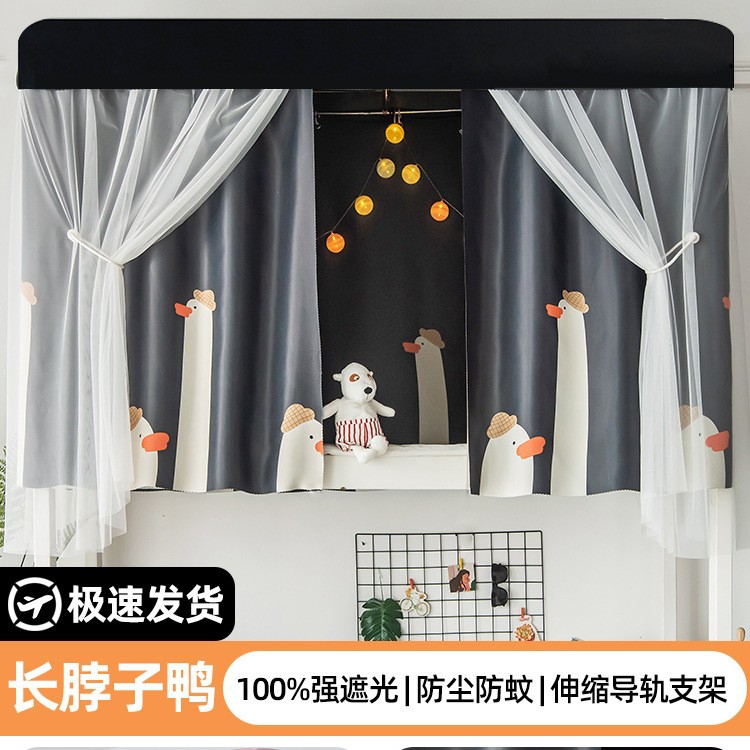 U 자형 트랙 베드 커튼 학생 기숙사 강한 음영 모기장 통합 U 자형 더블 슬라이딩 레일 침실 상부 침대 여성용 침대 커튼