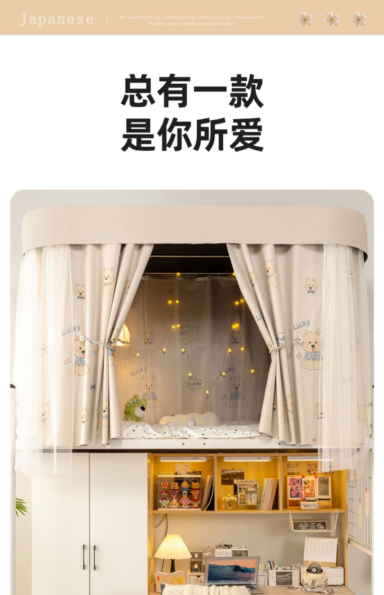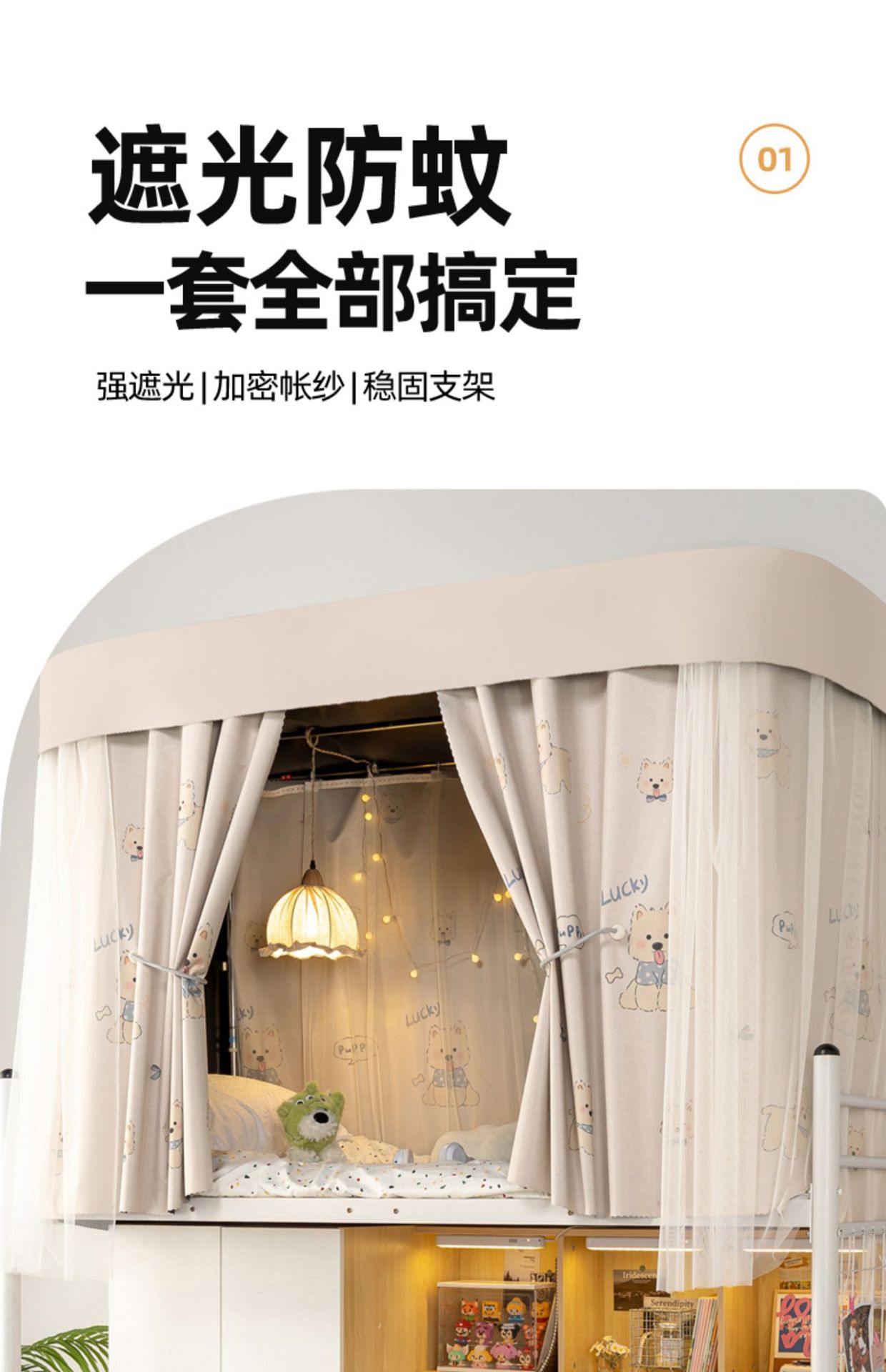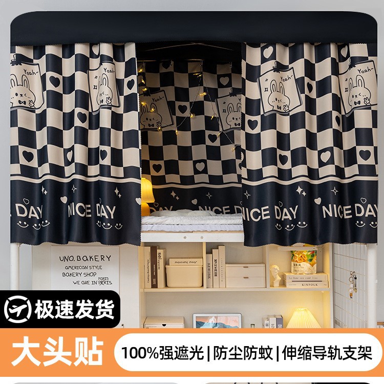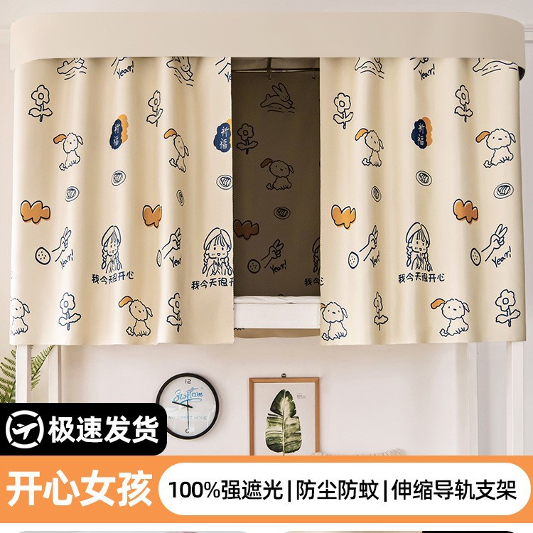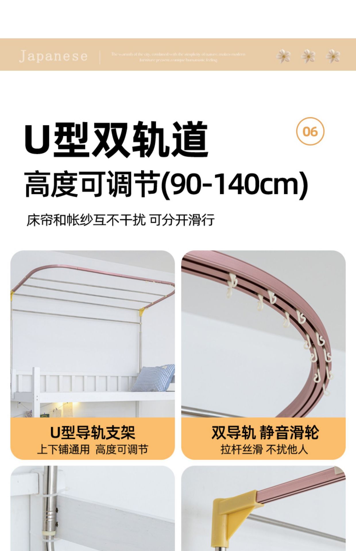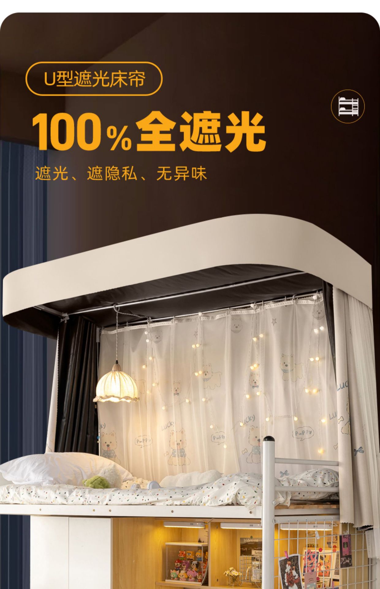 U 자형 트랙 베드 커튼 학생 기숙사 강한 음영 모기장 통합 U 자형 더블 슬라이딩 레일 침실 상부 침대 여성용 침대 커튼스토어 가기
