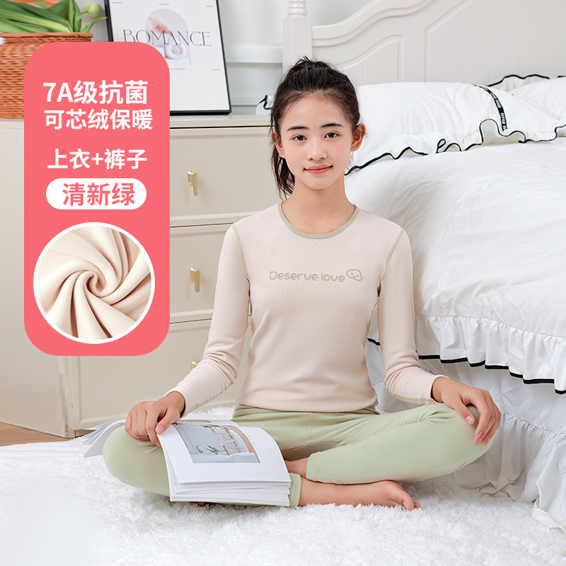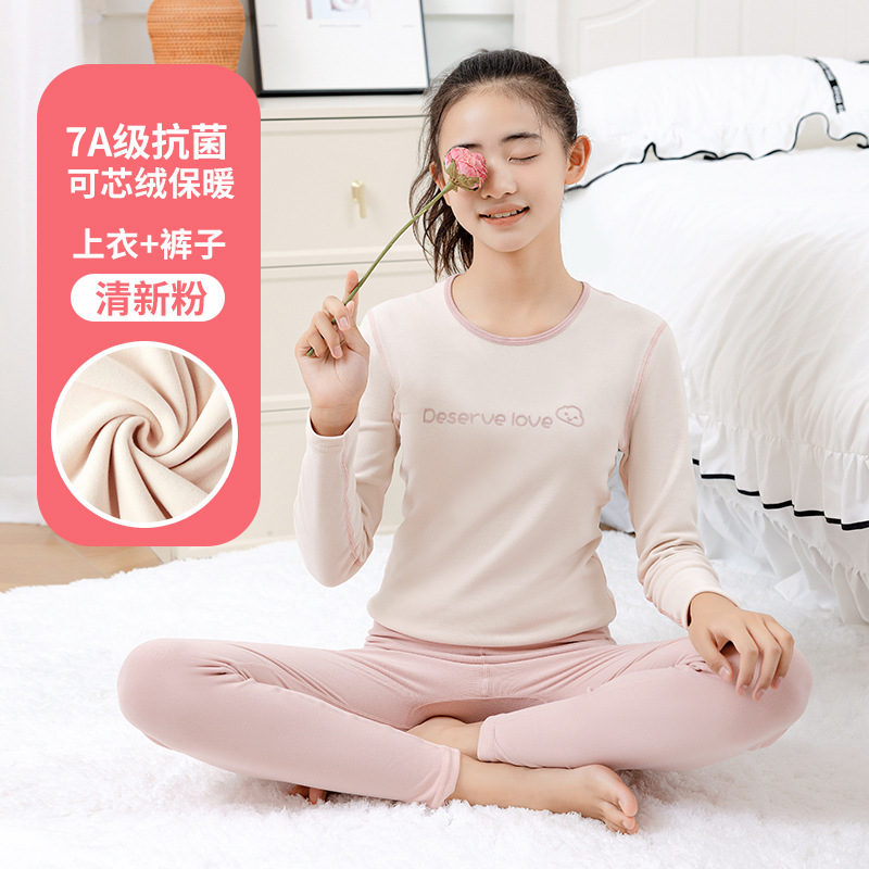 2024 새로운 열 속옷 숙녀 난방 기모 Deqiu 바지 세트 항균 중학생 착용베이스