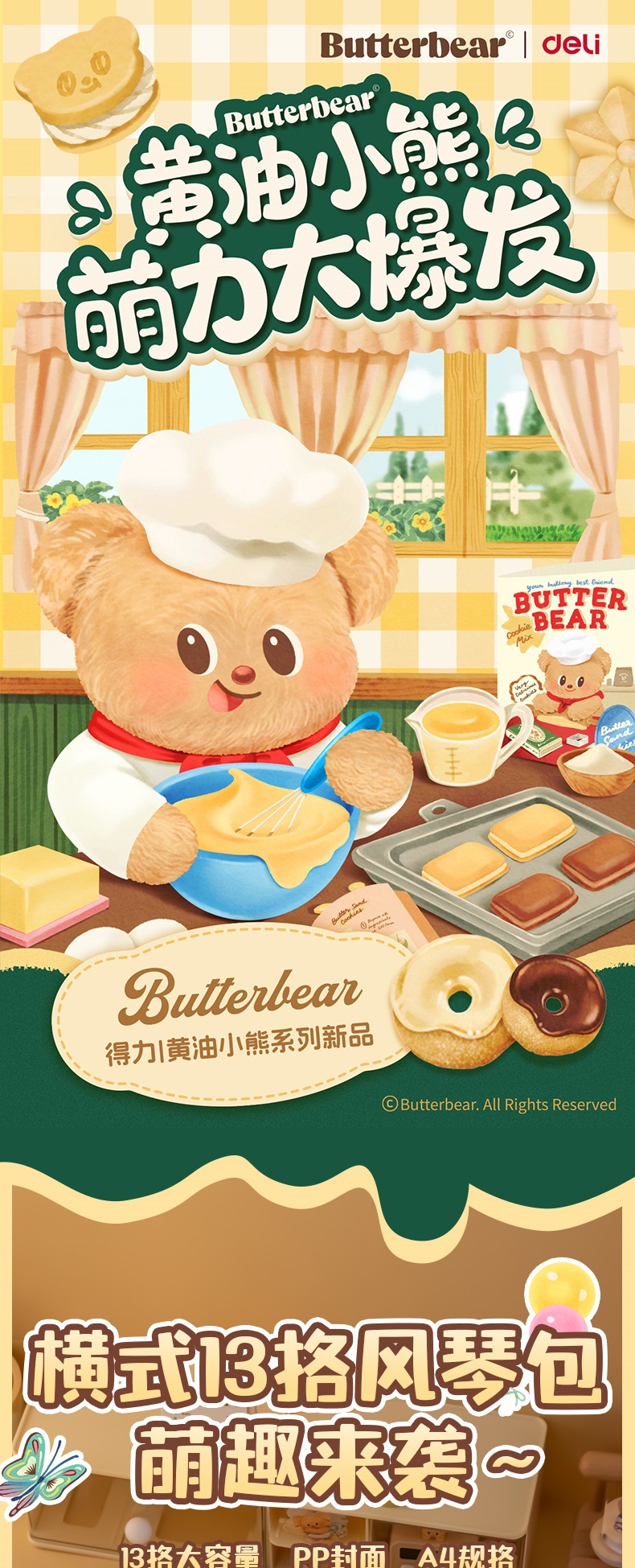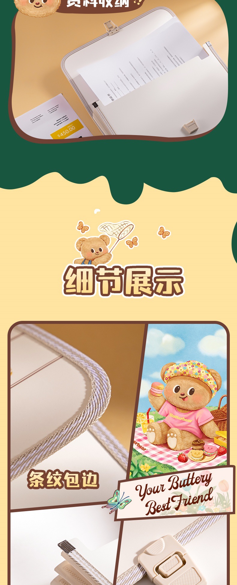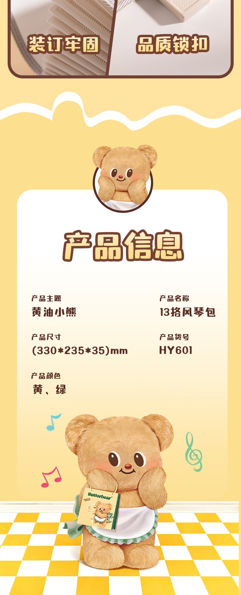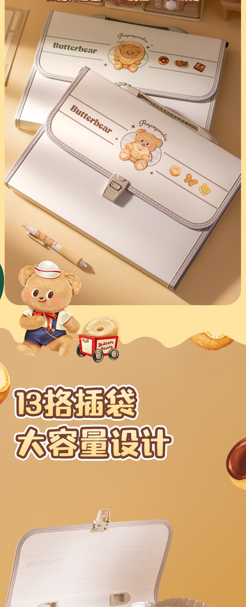 델리 HY601 버터 베어 13 그리드 오르간 가방 휴대용 폴더 학생 테스트 종이 다층 대용량 저장