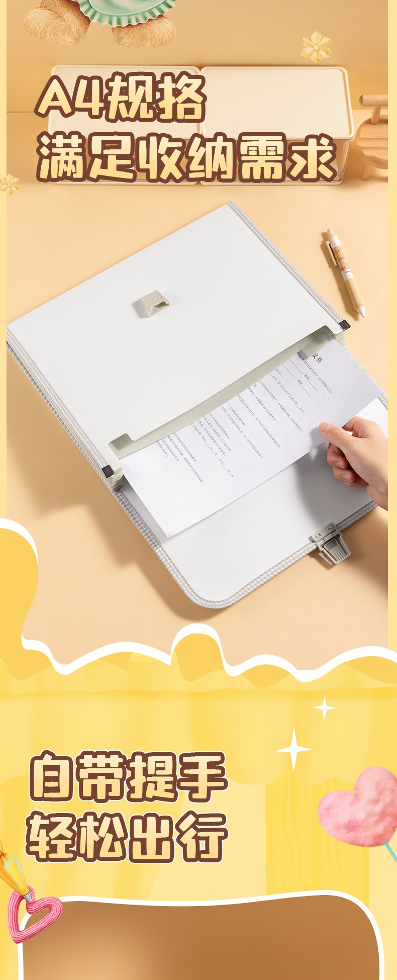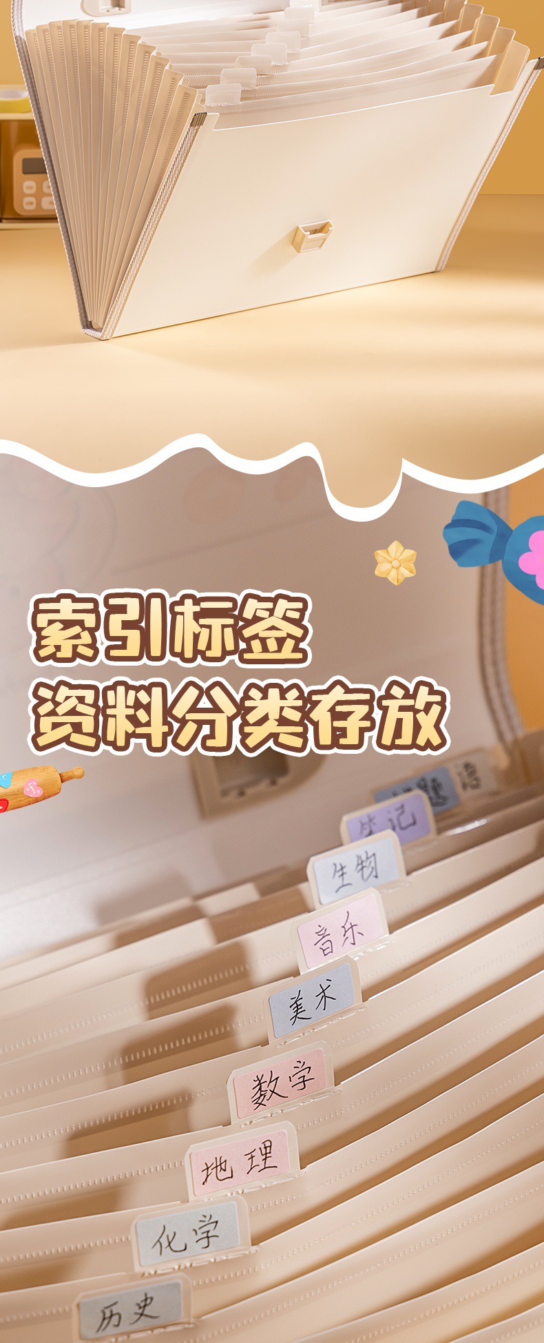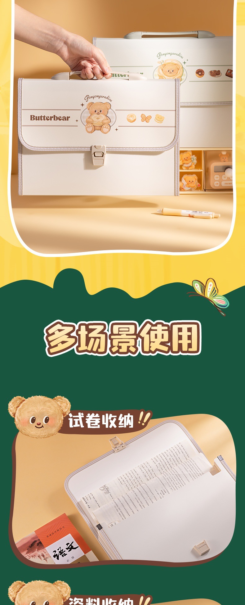 델리 HY601 버터 베어 13 그리드 오르간 가방 휴대용 폴더 학생 테스트 종이 다층 대용량 저장스토어 가기