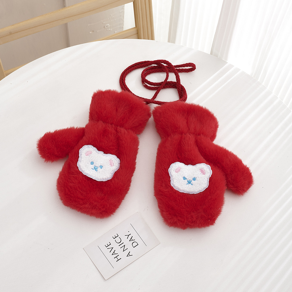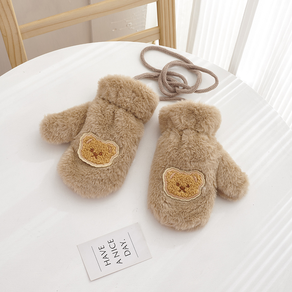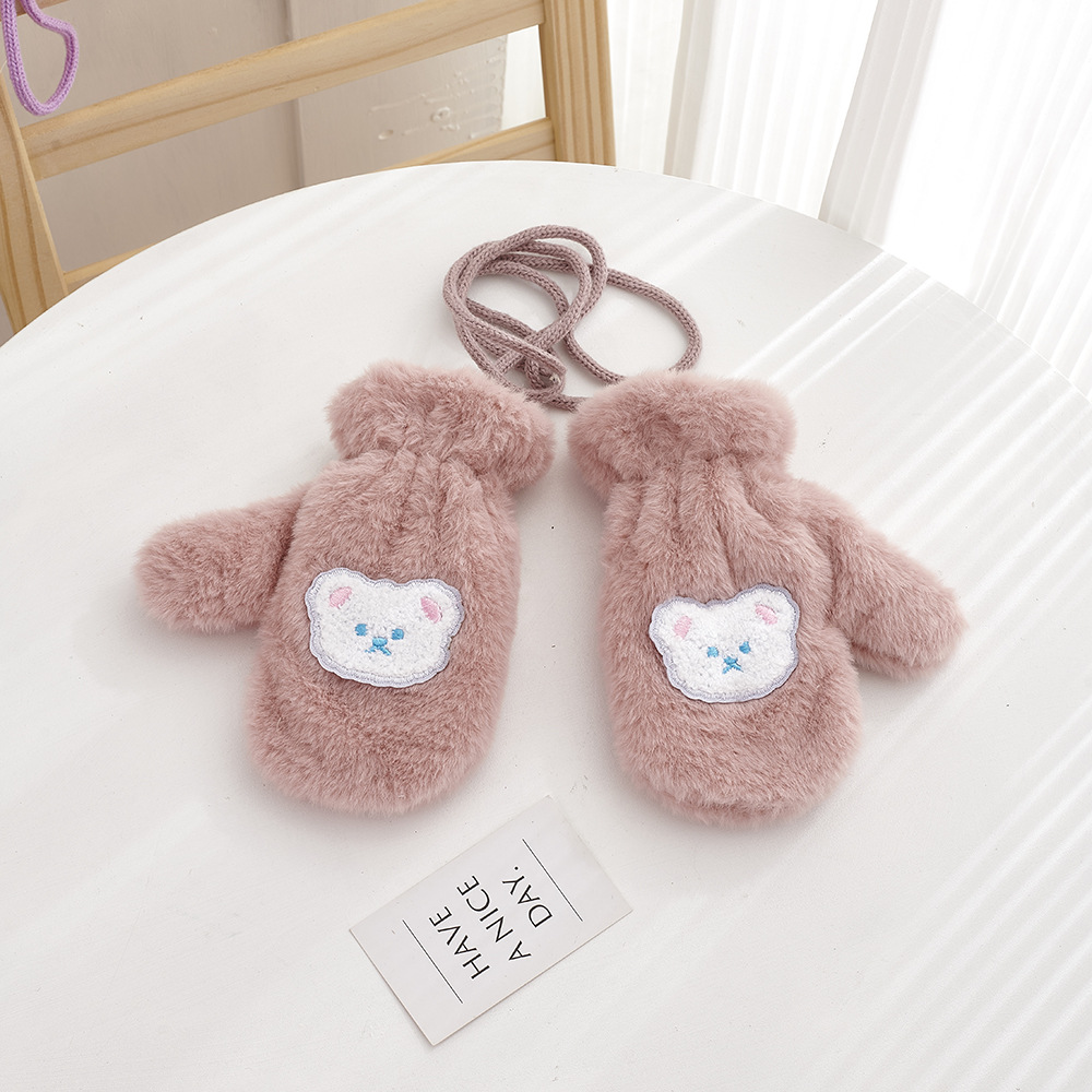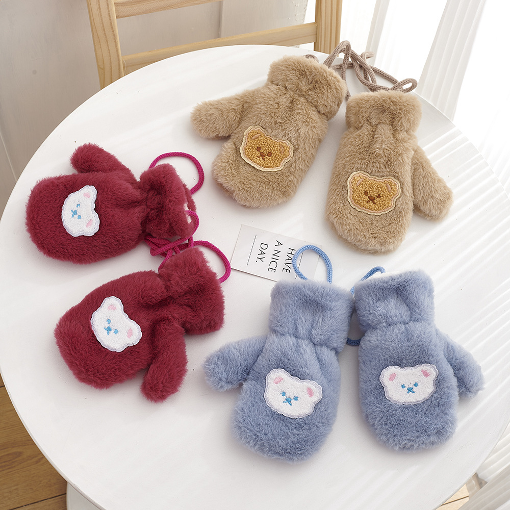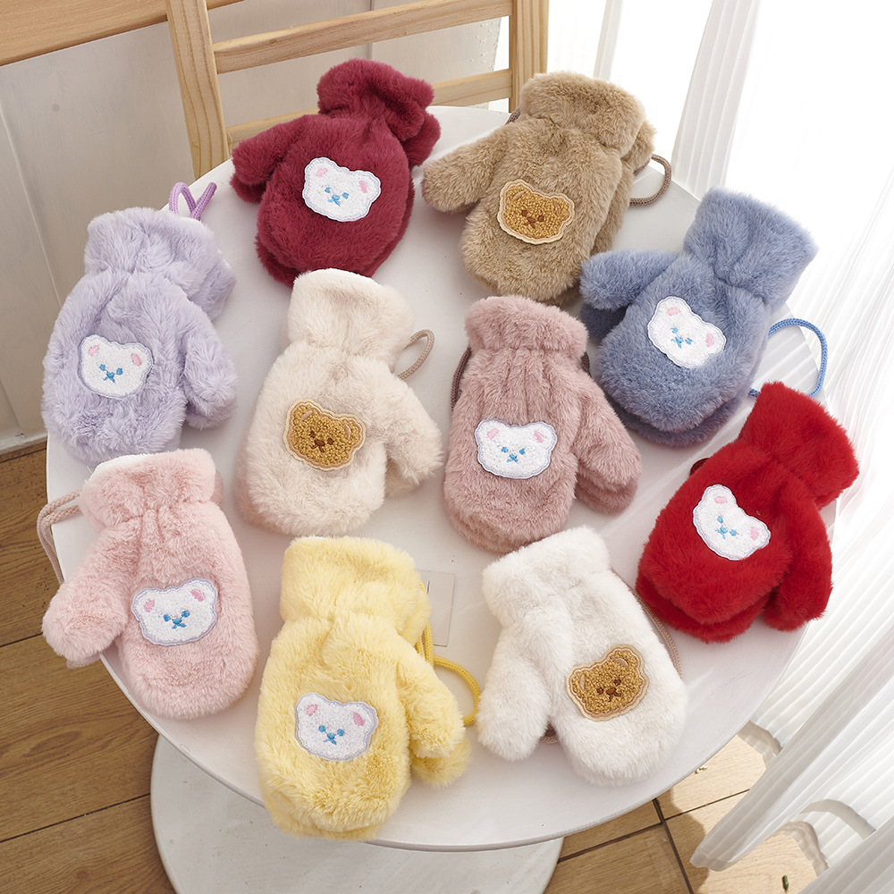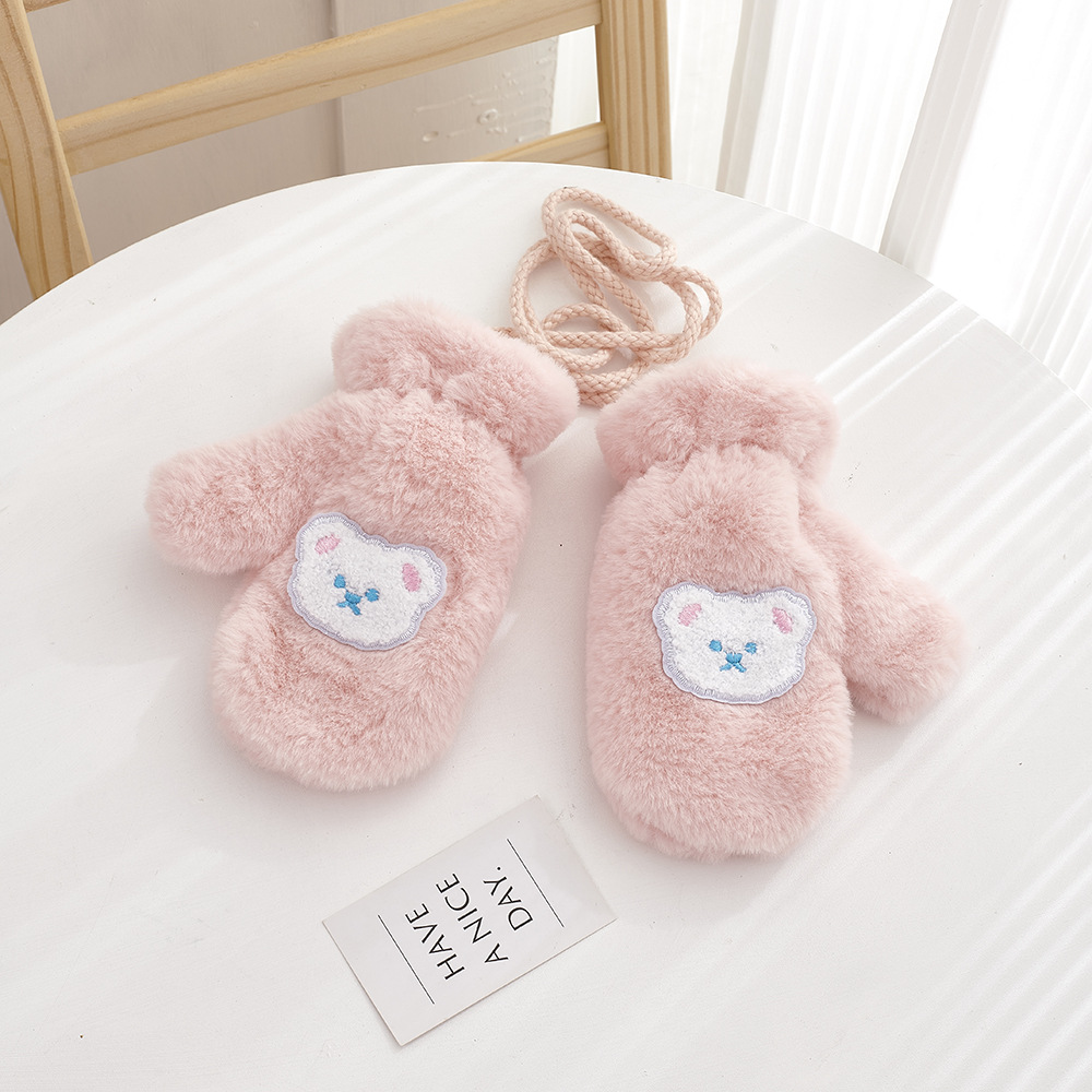 가을, 겨울 어린이 장갑 방풍 곰 만화 소년과 소녀 두꺼운 야외 플러스 벨벳 따뜻한 고삐 플러시 장갑