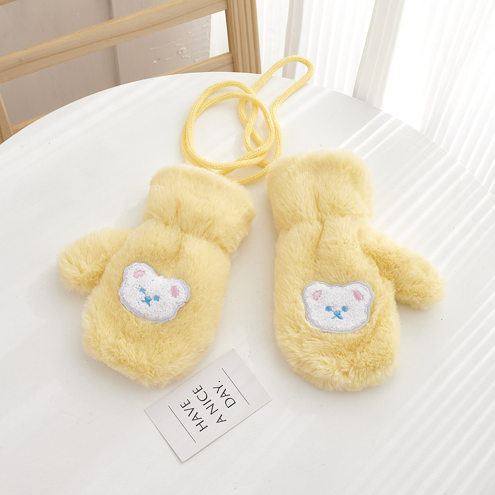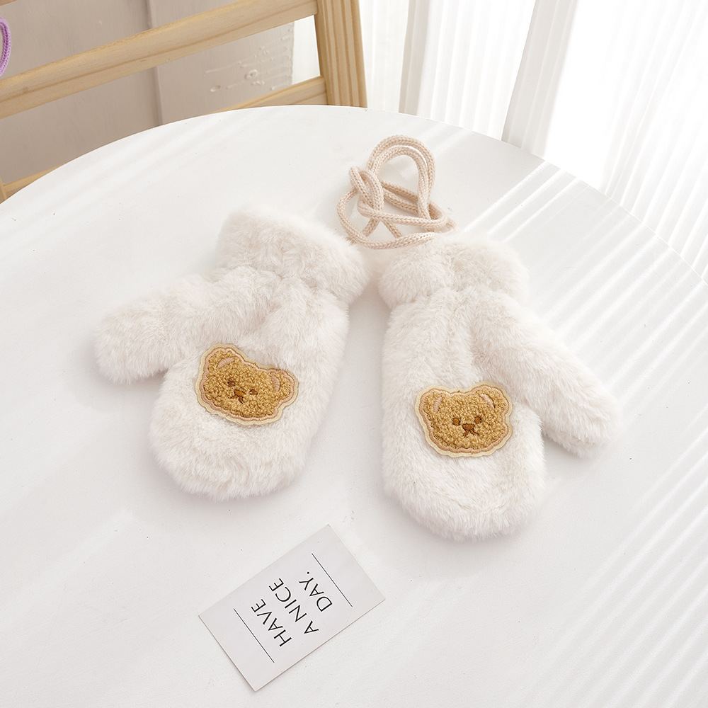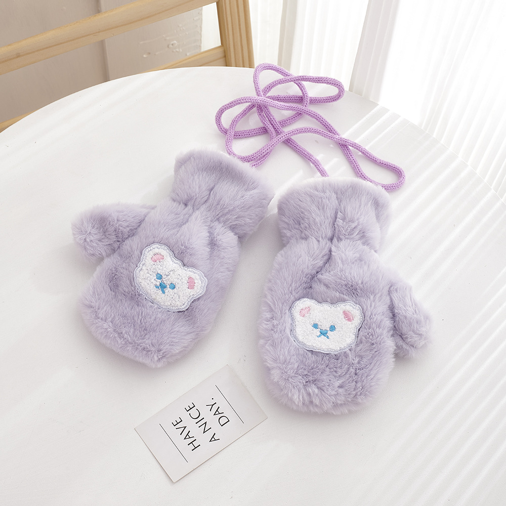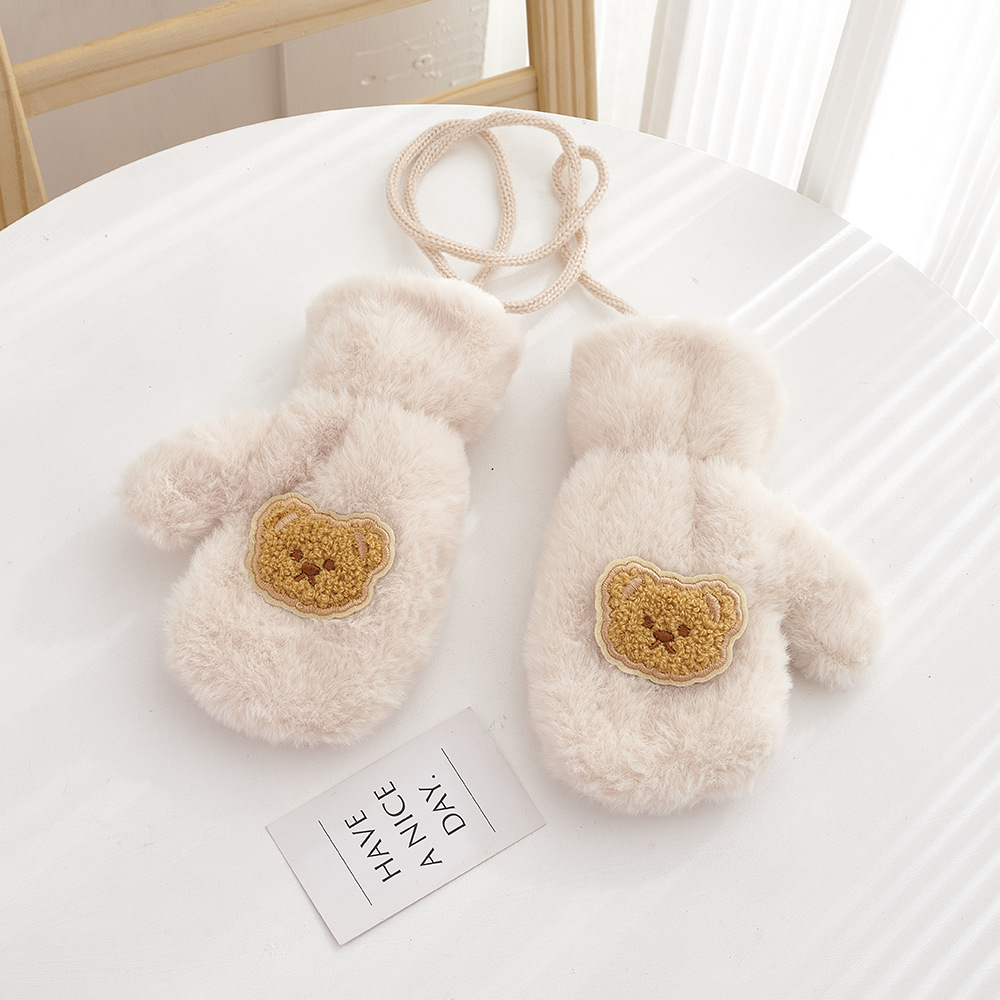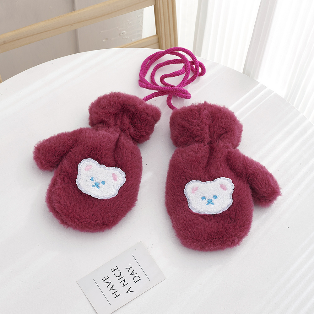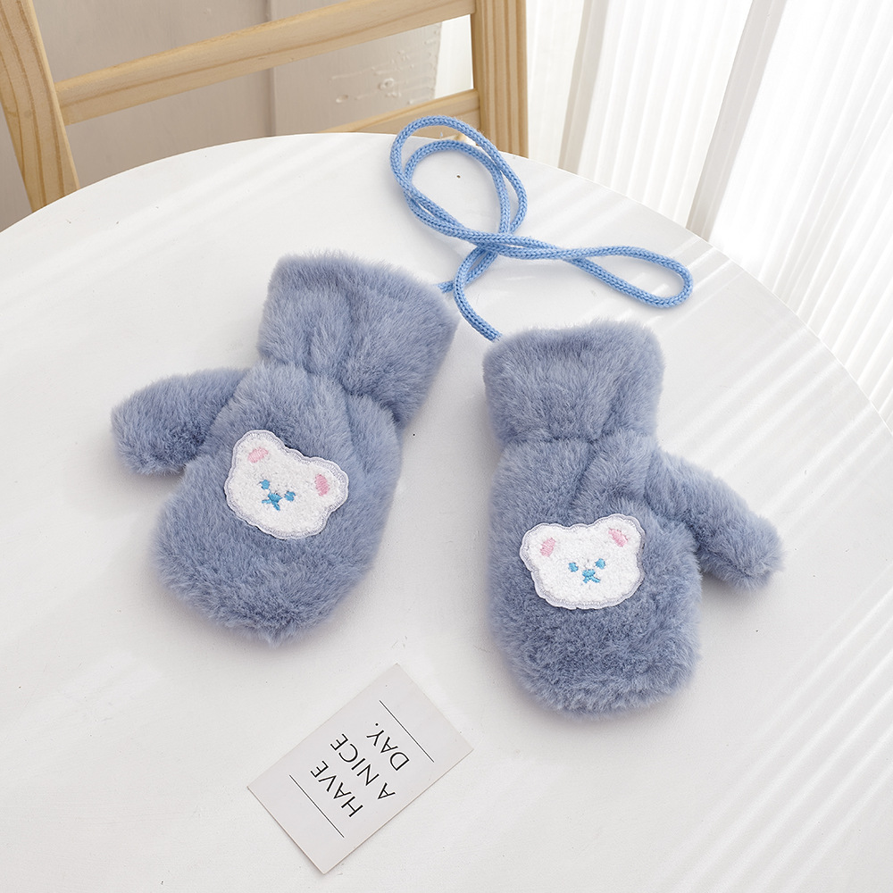 가을, 겨울 어린이 장갑 방풍 곰 만화 소년과 소녀 두꺼운 야외 플러스 벨벳 따뜻한 고삐 플러시 장갑