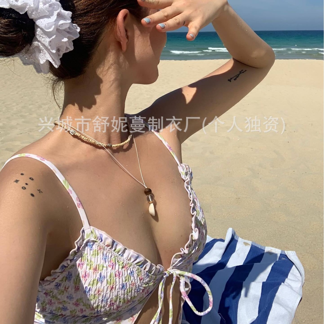 수영복 인스 타 그램 스타일 여성 스플릿 비키니 온천 한국 작은 가슴 수영복 여성 하이 엔드 수영복