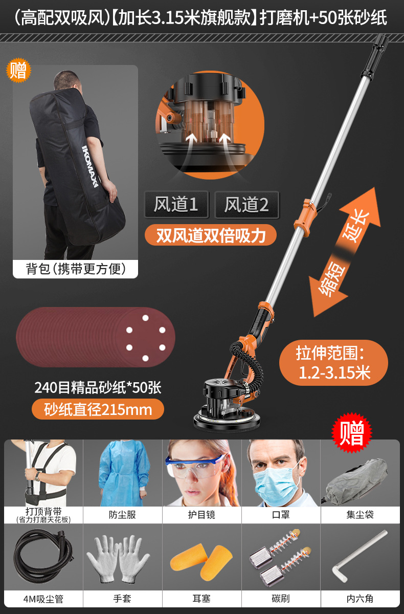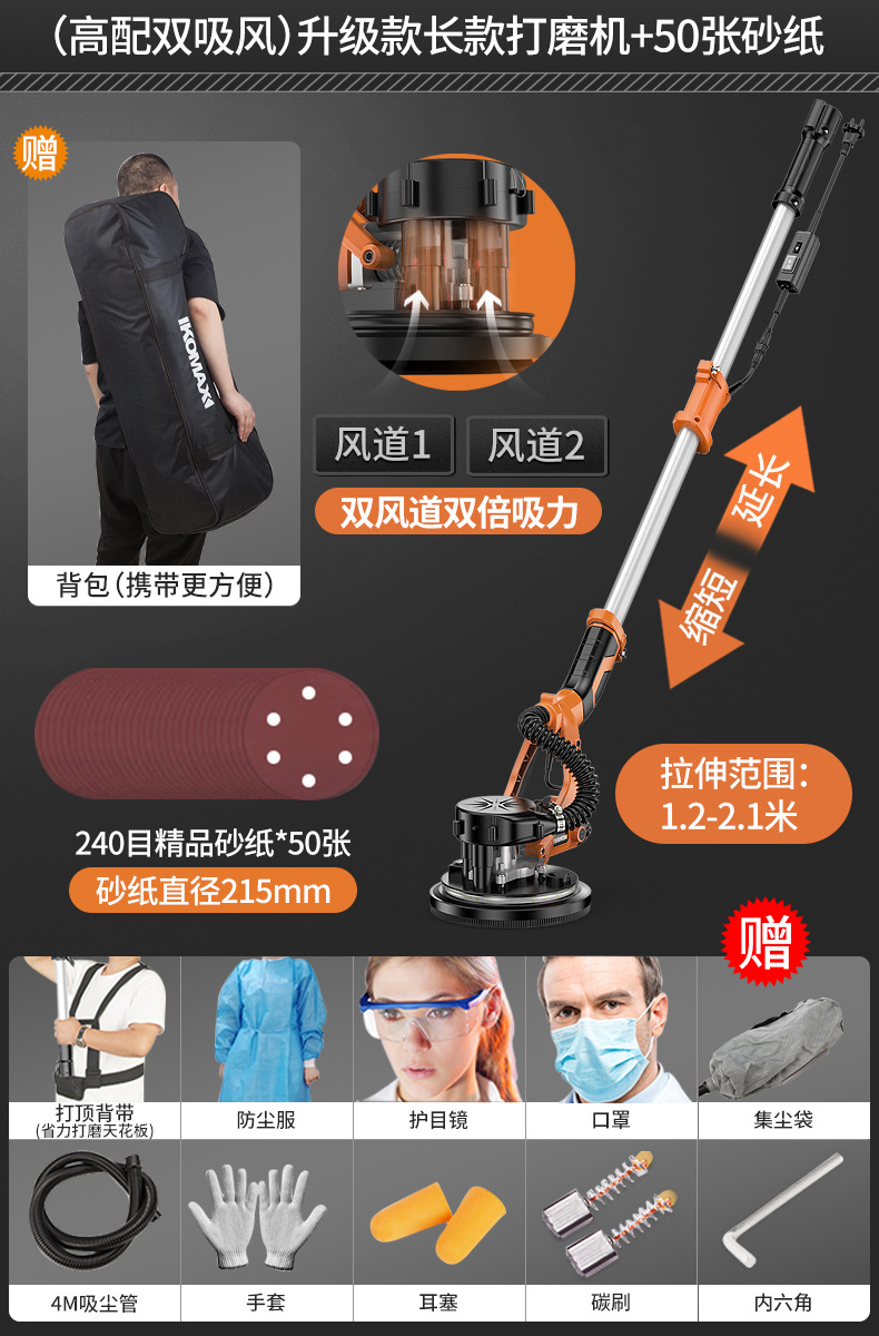• (고구성 이중흡입) 업그레이드된 롱 그라인더 + 사포 50장 + 선물 패키지
