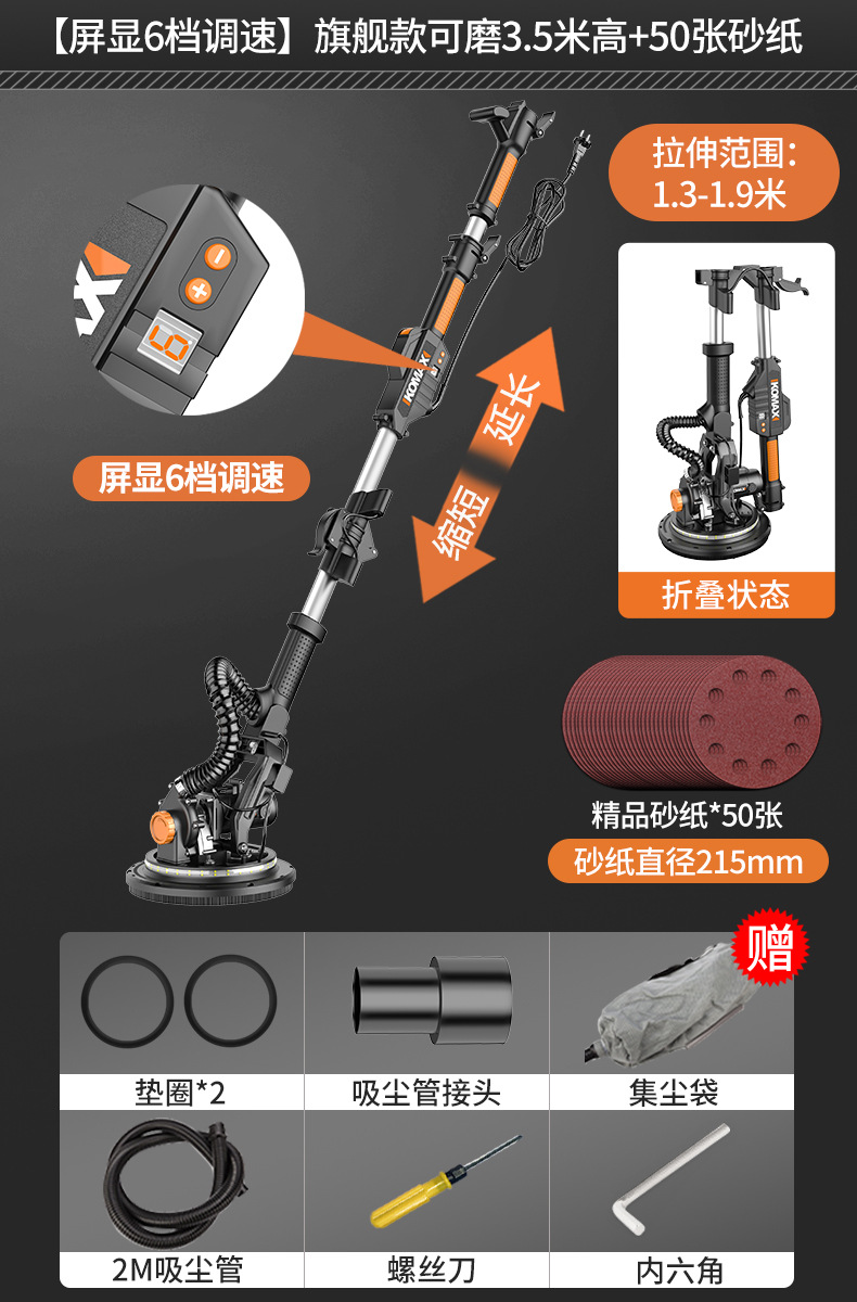 • [화면 디스플레이 6단 속도 조절] 최고 확장 모델은 높이 4.6m 연삭 + 사포 50장