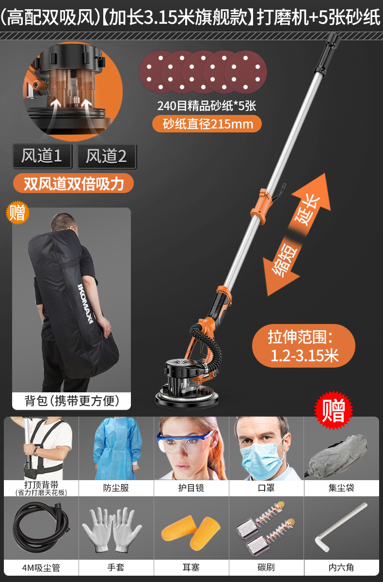 • (고구성 이중흡입) 업그레이드된 롱 그라인더 + 사포 100장 + 선물 패키지