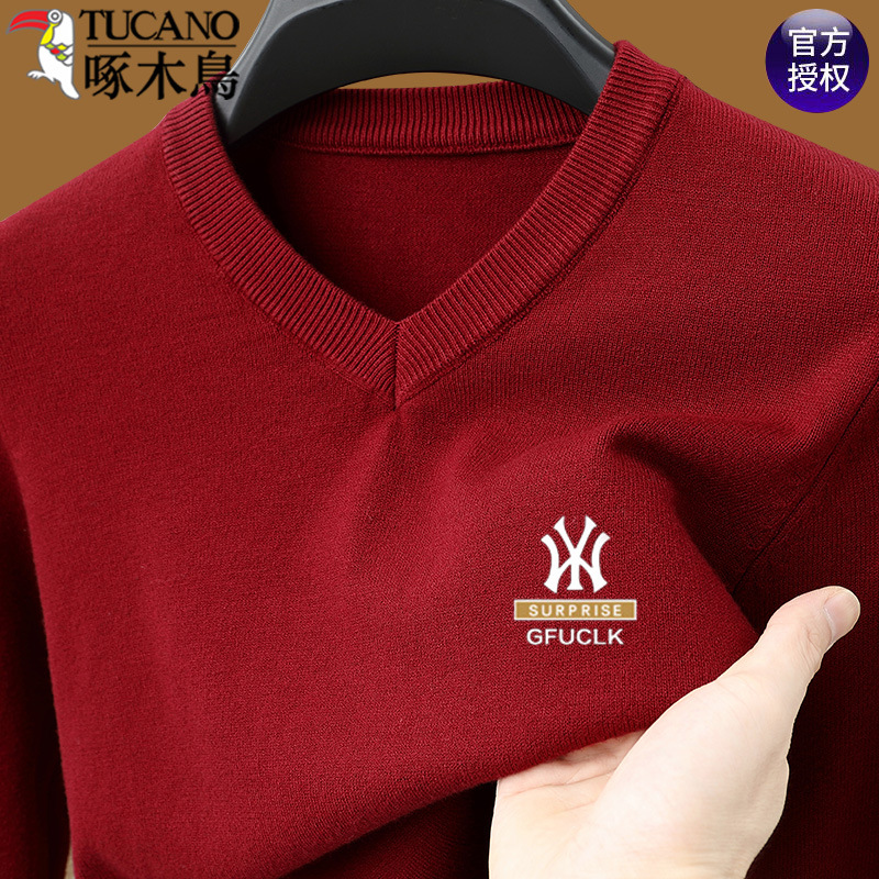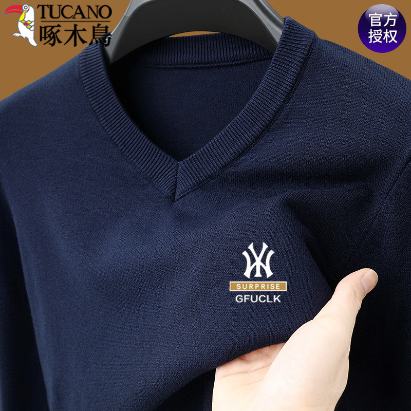 딱따구리 울 스웨터 남자 100 순수 울 V 넥 스웨터 가을과 겨울 중년 남자 아빠베이스 셔츠 레터스토어 가기