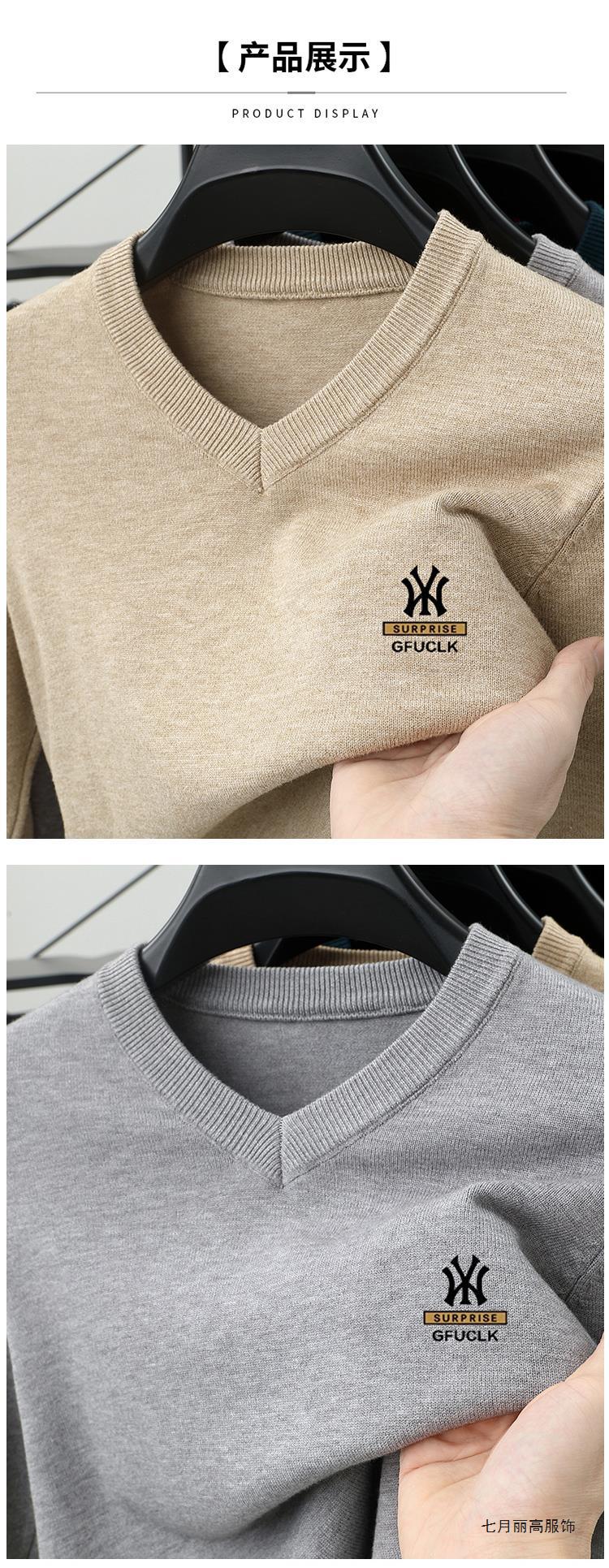 딱따구리 울 스웨터 남자 100 순수 울 V 넥 스웨터 가을과 겨울 중년 남자 아빠베이스 셔츠 레터