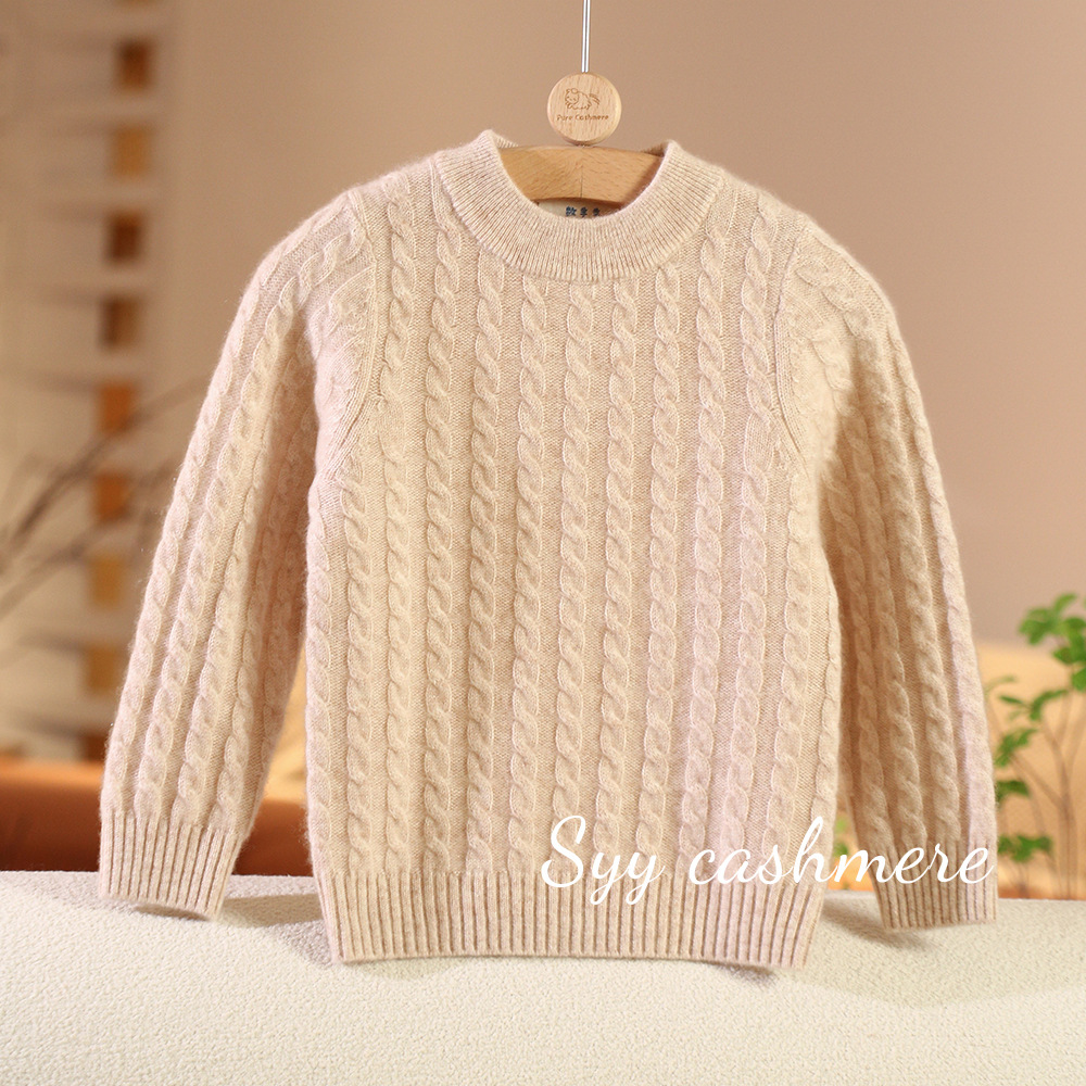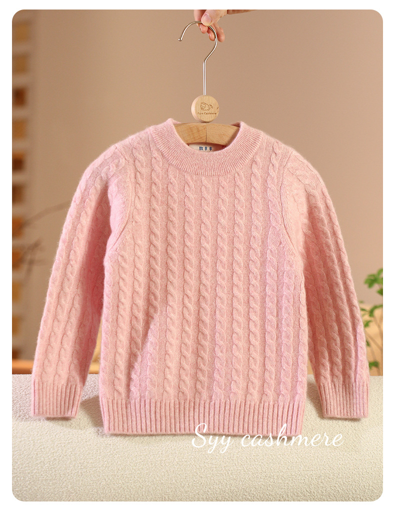 가을과 겨울 남녀 어린이 100 순수 캐시미어 트위스트 패딩 베이스 크루 넥 스웨터