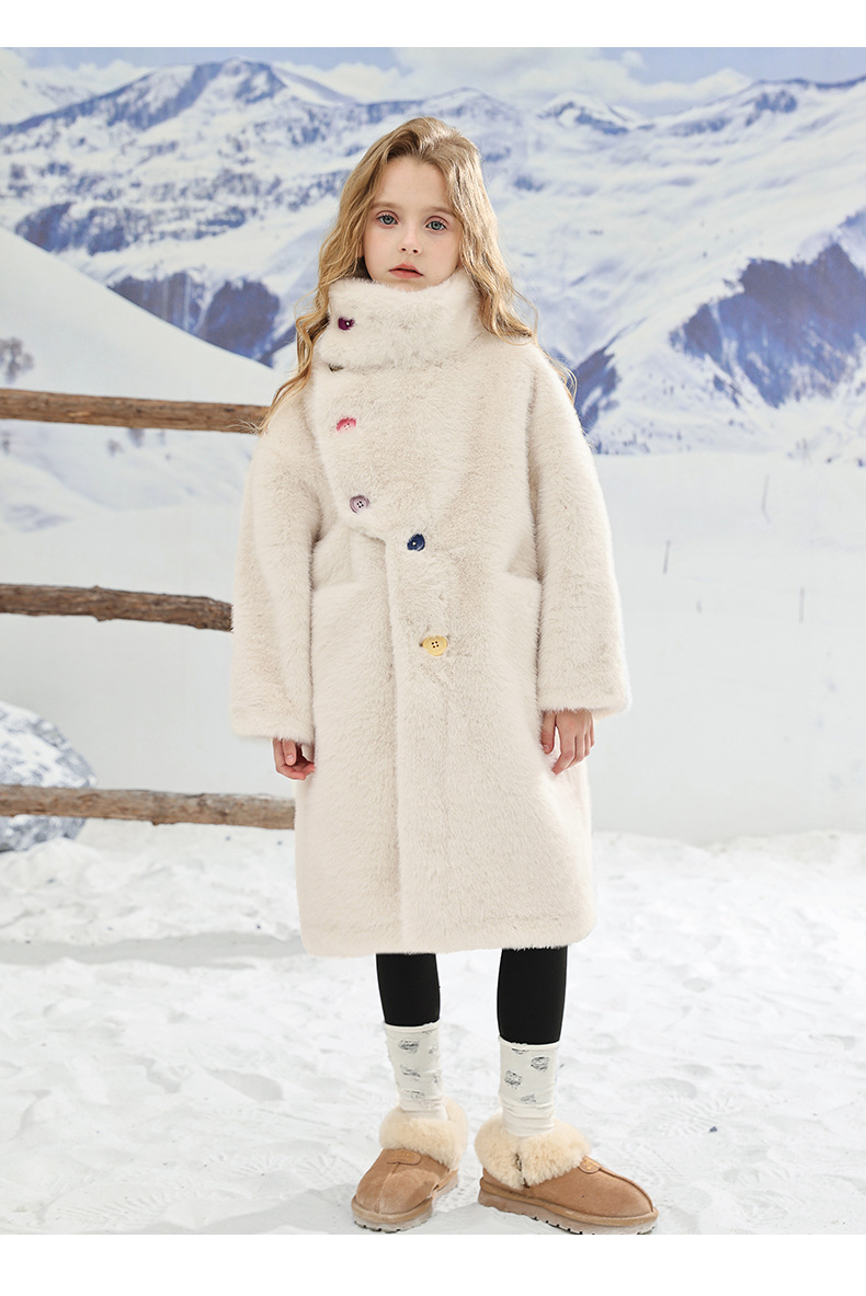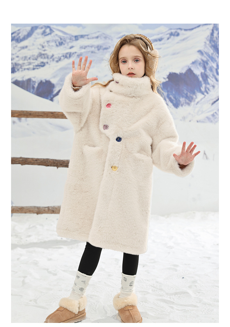 여아용 겨울 컬러풀 버튼 밍크 벨벳 스웨터 2025 아동용 중대형 어린이 패셔너블 두꺼운 모피 코트 겨울 의류 트렌드스토어 가기