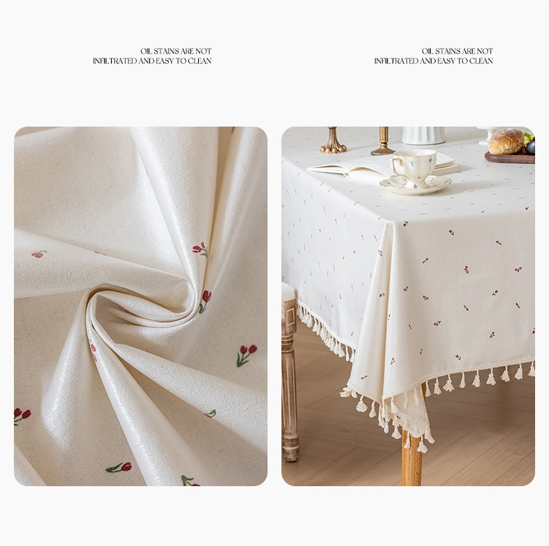 프랑스 스타일 테이블 천 워시 프리 오일 방수 코튼 리넨 패브릭 라이트 럭셔리 하이 엔드 느낌 식탁 식탁보 커피 테이블 매트 2024 새로운 스타일