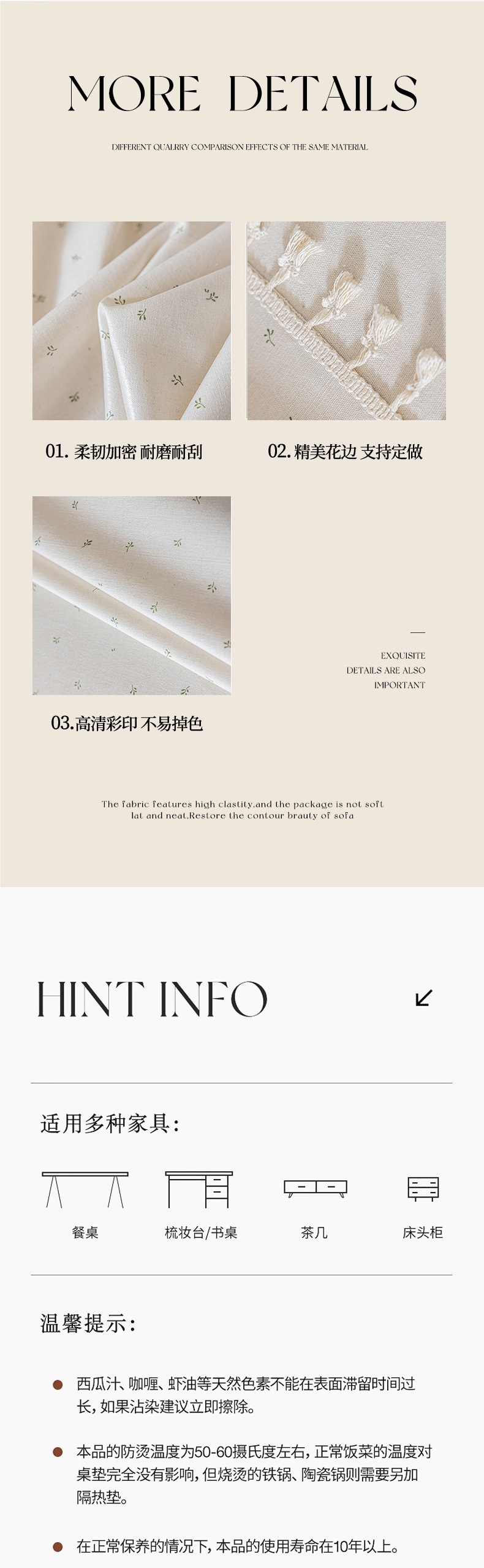 프랑스 스타일 테이블 천 워시 프리 오일 방수 코튼 리넨 패브릭 라이트 럭셔리 하이 엔드 느낌 식탁 식탁보 커피 테이블 매트 2024 새로운 스타일스토어 가기