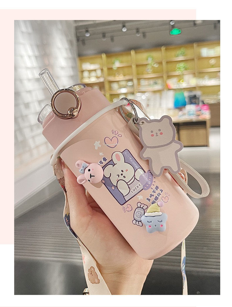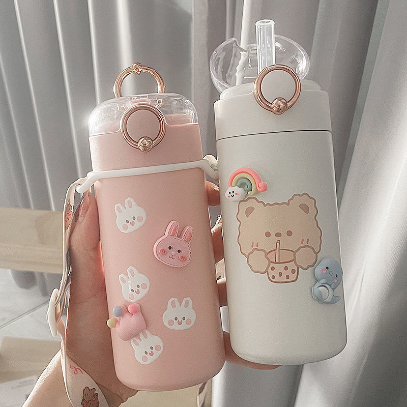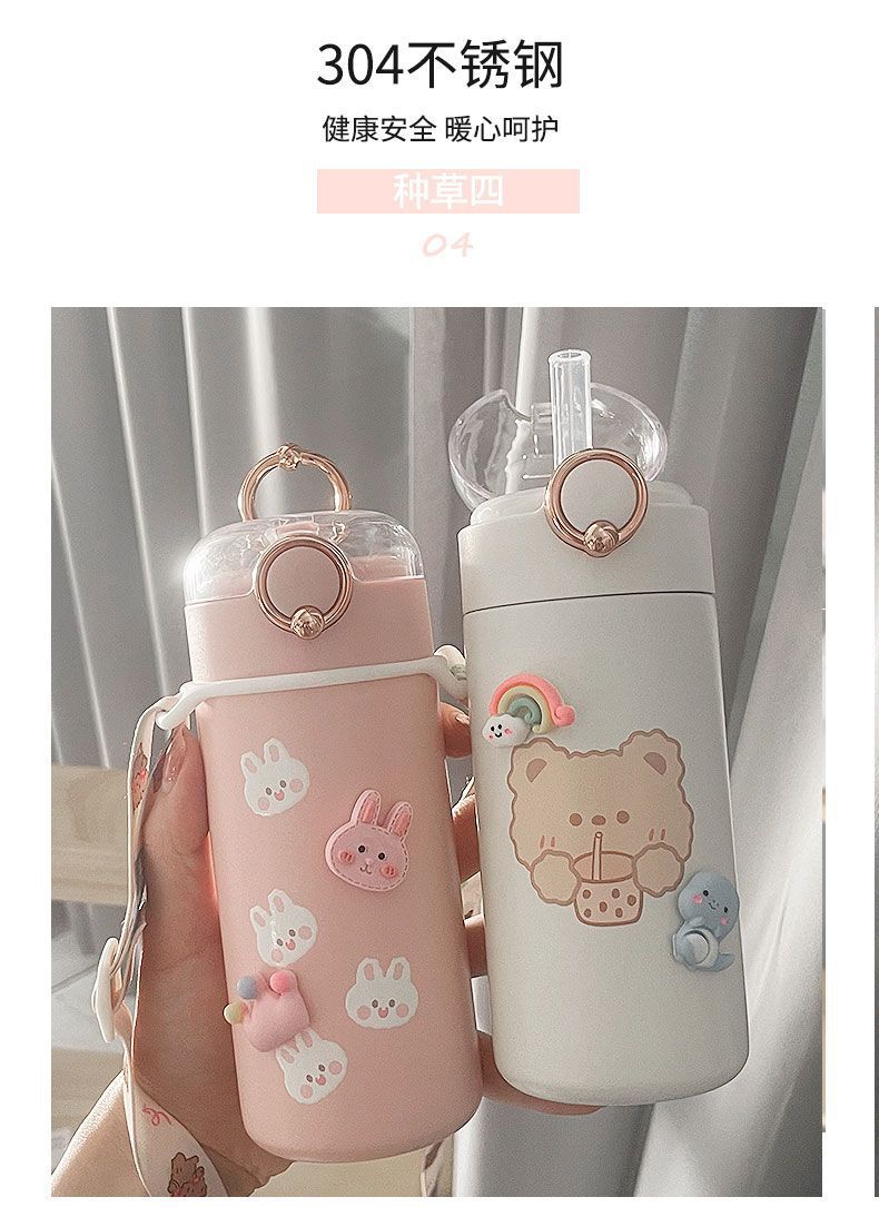 물 컵 보온병 여성의 귀여운 흡입 튜브 유형 소녀의 병 높은 색 가치 주전자 인터넷 학생과 어린이를위한 학교 Hongzhi스토어 가기