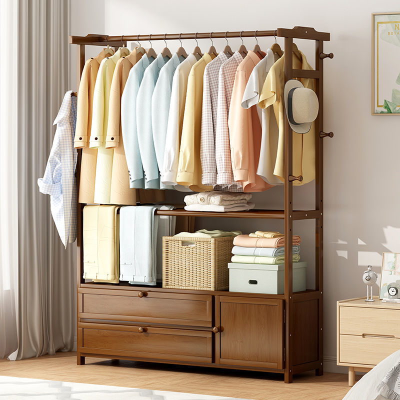 코트 랙 바닥 수직 단단한 나무 가구 옷장 강력한 대용량 옷 걸이 Hongzhi 건조를위한 다기능 저장 랙