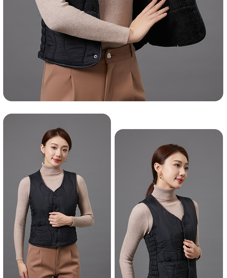 2025 가을 겨울 여성용 다운 코튼 조끼, 보온성 있는 짧은 브이넥 조끼, 슬림핏, 다용도, 우아한 이너웨어스토어 가기