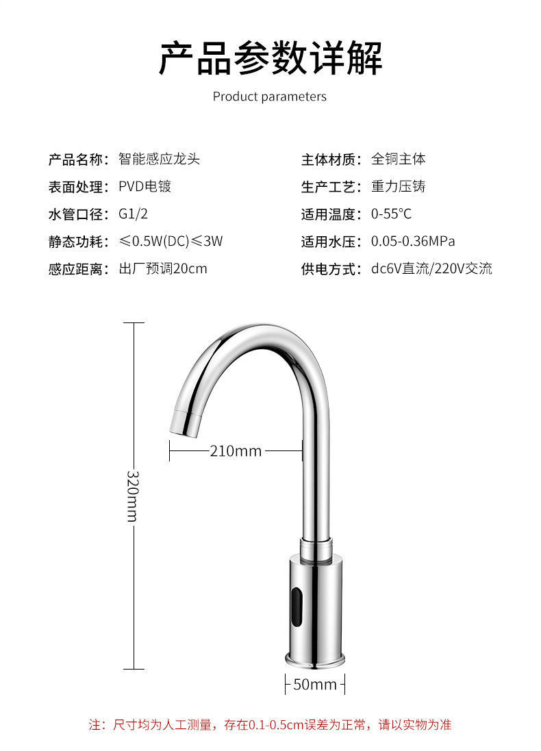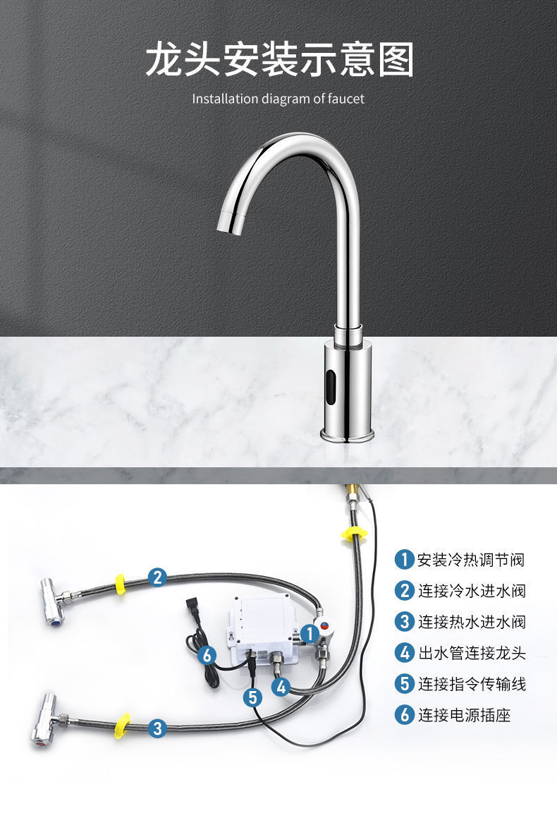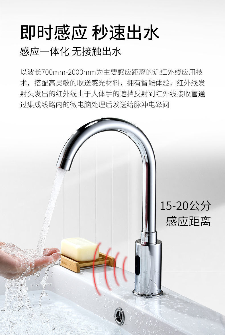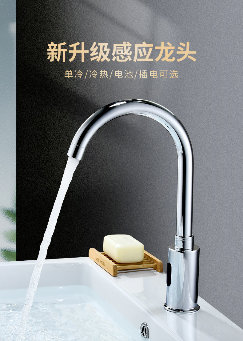 모든 구리 유도 수도꼭지 단일 추위와 뜨거운 지능형 유도 적외선 가정용 손 세탁기 공장 도매