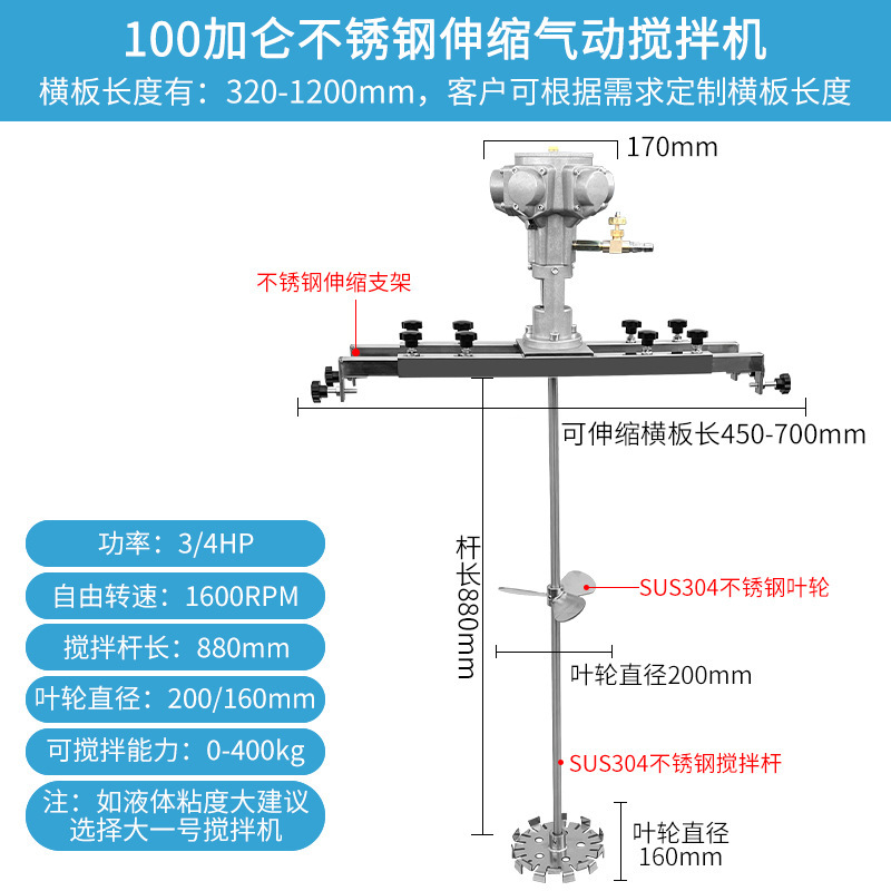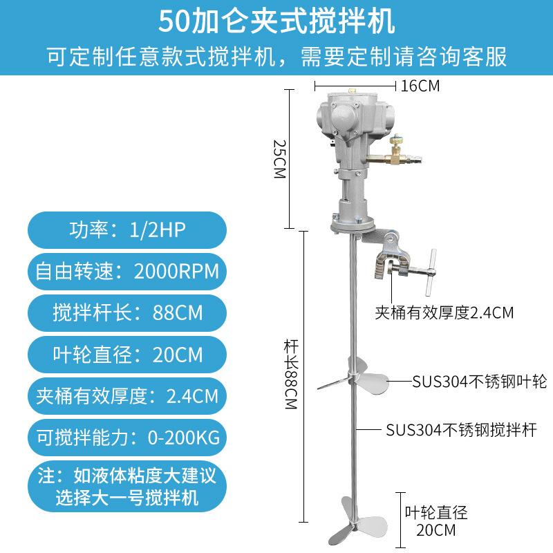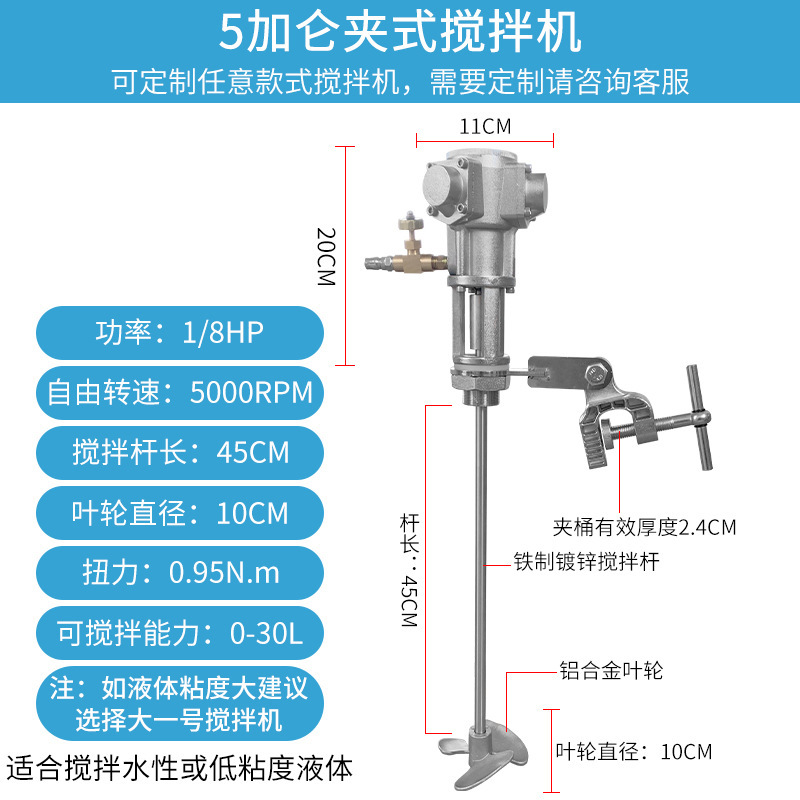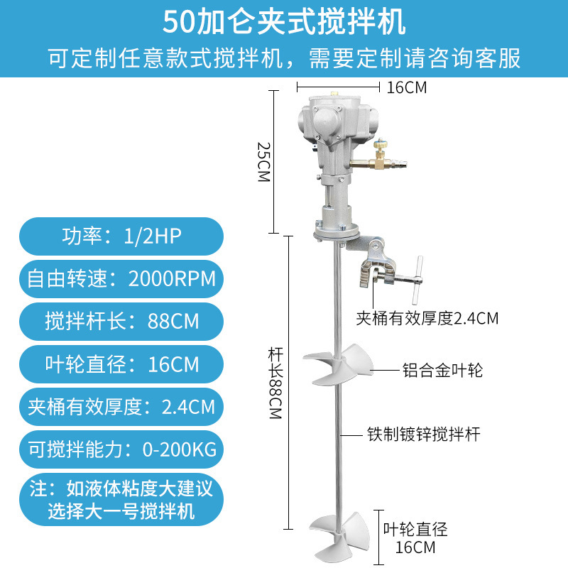 50 휴대용 믹서 무료 배송 믹서 클립 온 리프트 폭발 방지 공압 믹서 페인트 갤런