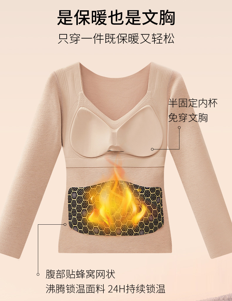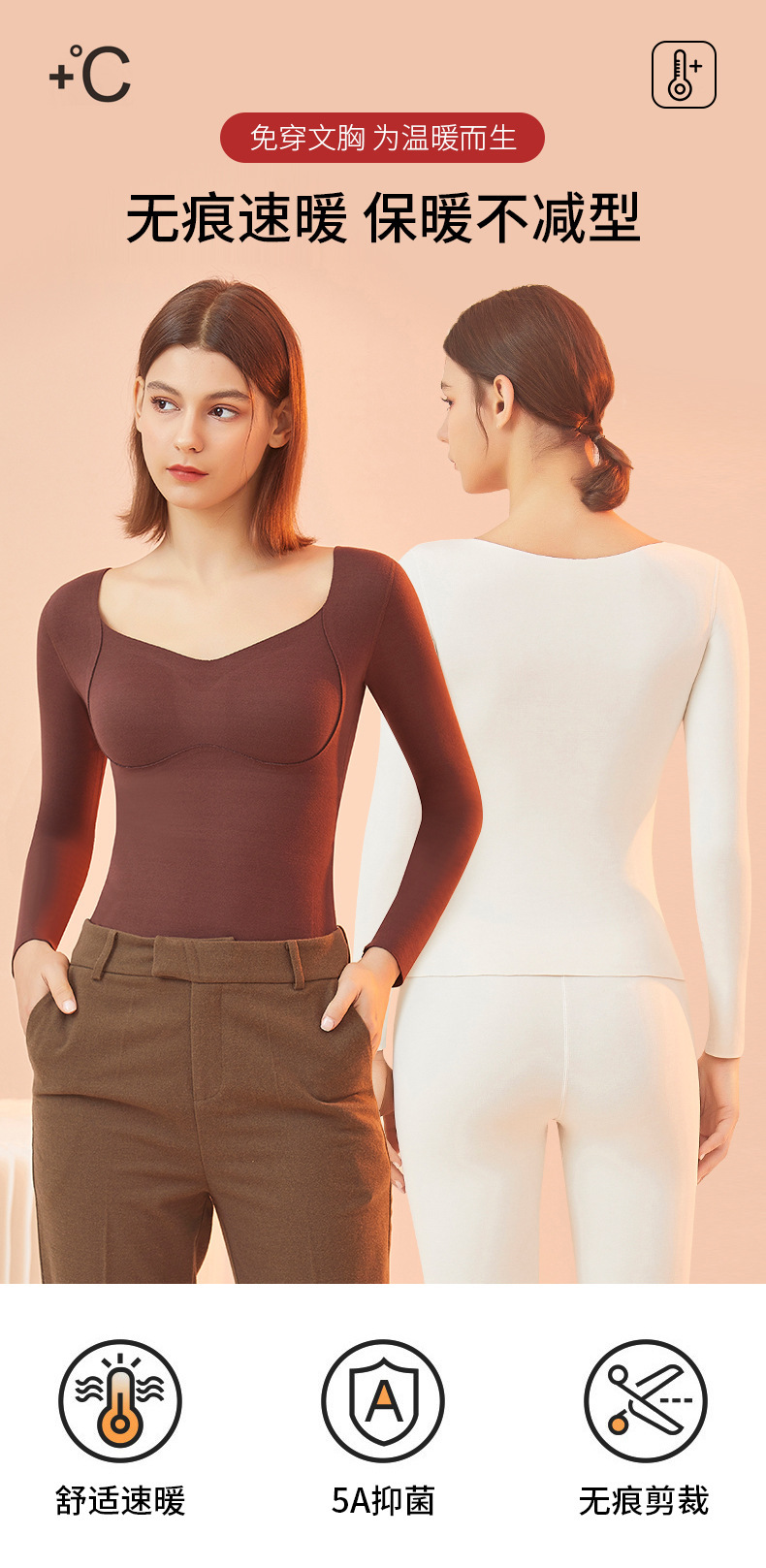 Wushi Technology Seamless Bra with Chest Pad Wear-Free Bra Push-Up Warm Base Clothes 캐시미어 두꺼운 복부 따뜻한 속옷 여성용스토어 가기