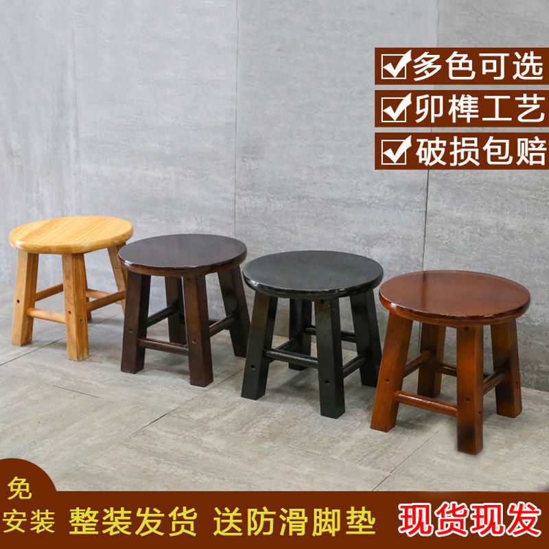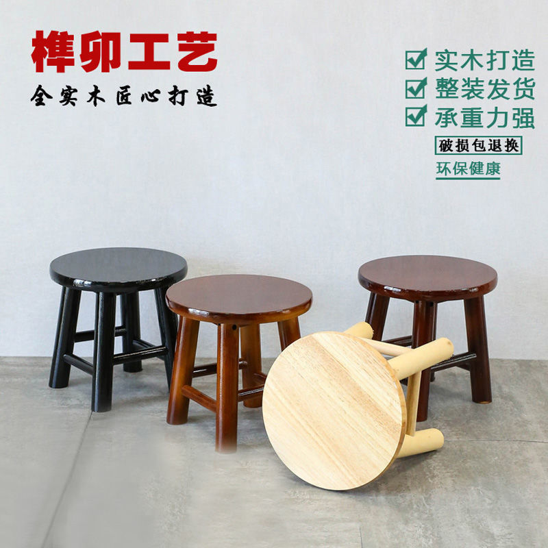 낮은 의자 솔리드 우드 작은 벤치 오크 작은 라운드 의자 솔리드 우드 T 의자 작은 광장 의자 가정용 세탁 의자 신발 변경 의자 Hongzhi스토어 가기