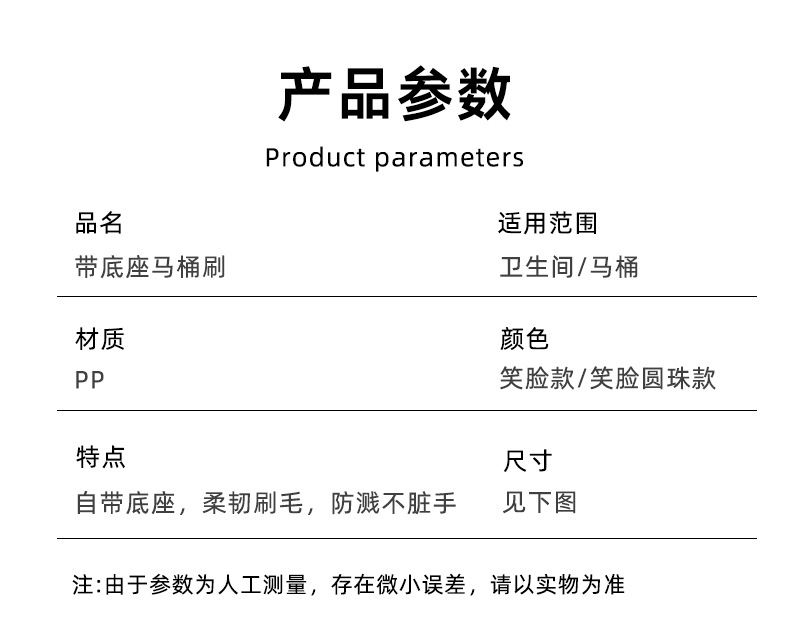 • [웃는 얼굴 둥근 구슬 스타일] 베이스가 있는 변기 솔