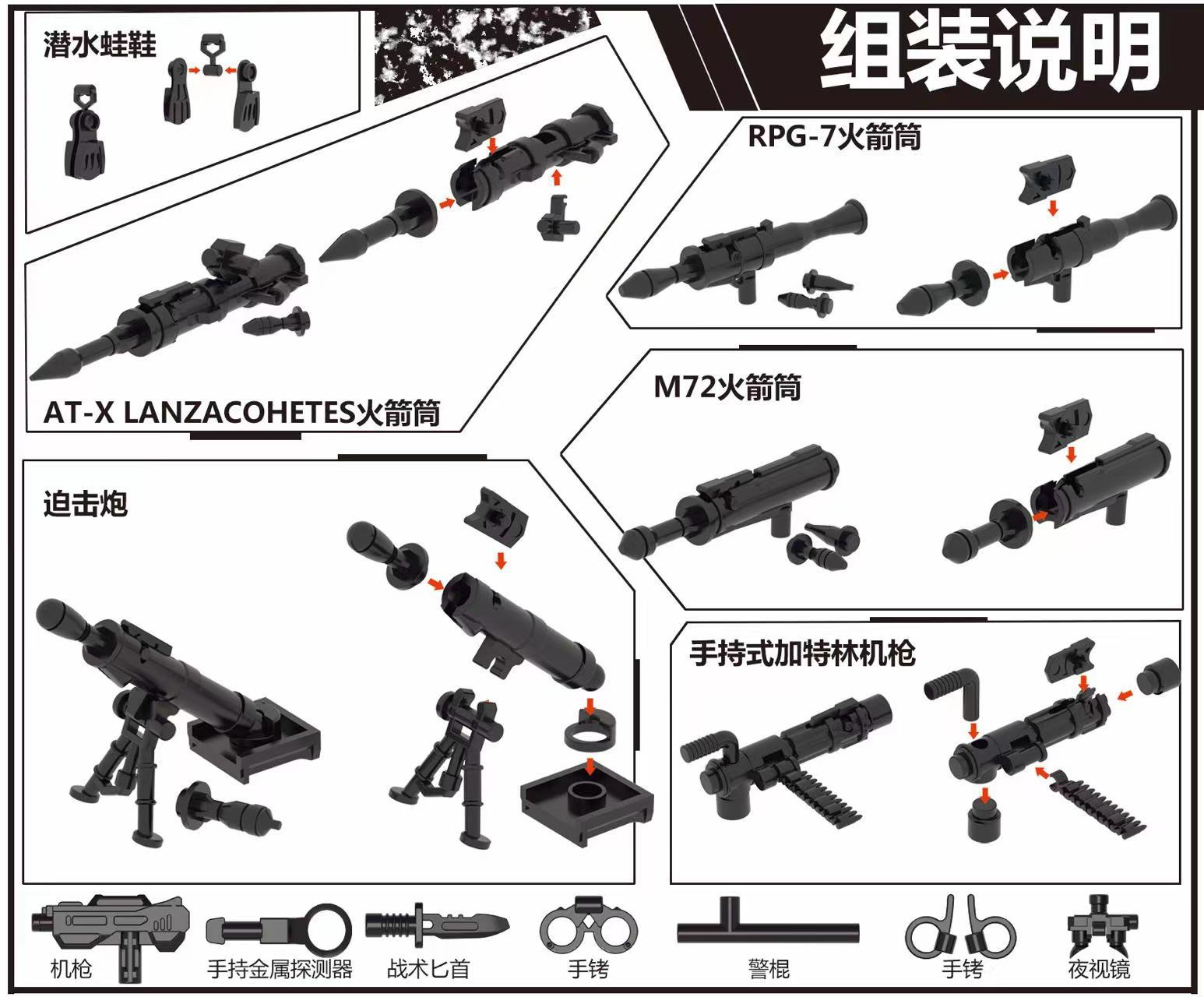 국경 간 현대 군사 액세서리 무기 박격포 개틀 로켓 발사기 남자 조립 건물 블록 장난감스토어 가기