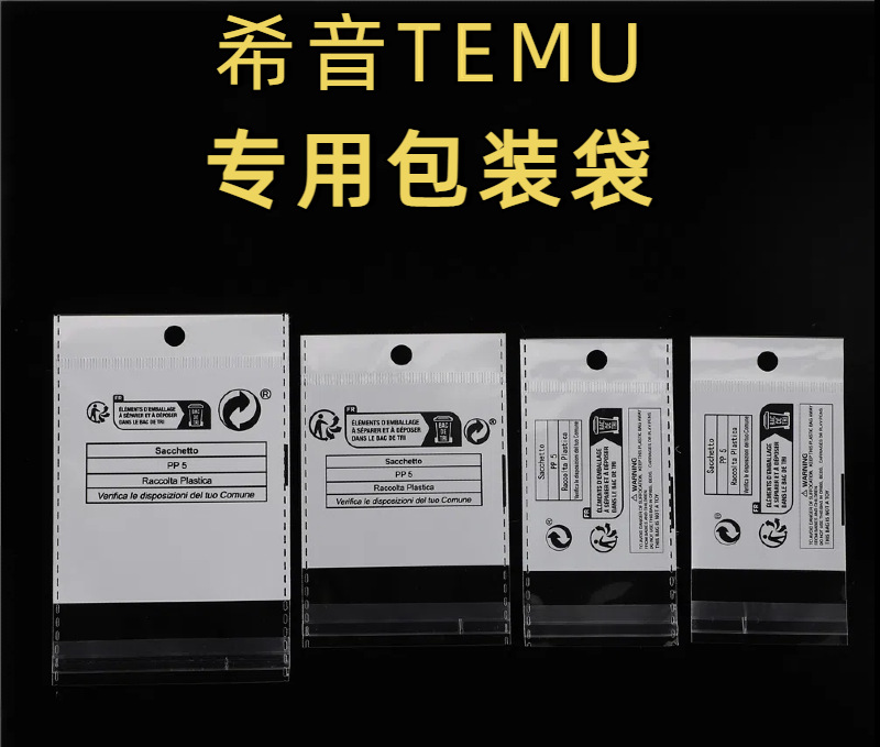 오다이시인 테무 접착식 가방 PP5 표준 친환경 표지 경고 문구 삼중 진주광택 이중 투명 포장 가방스토어 가기